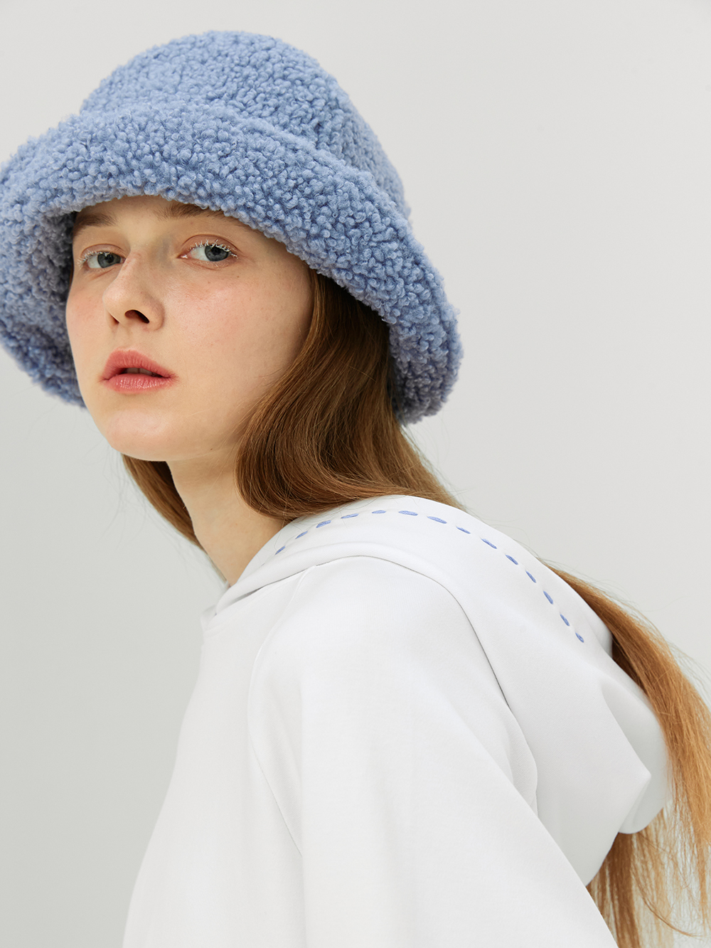 - FW 시즌에 맞게 두께감 있는 뽀글이 원단으로 제작된 버킷햇