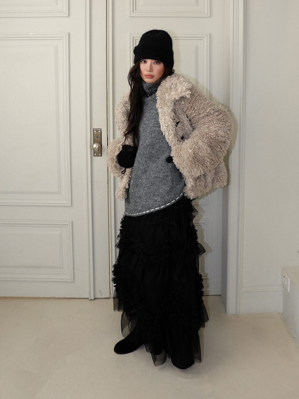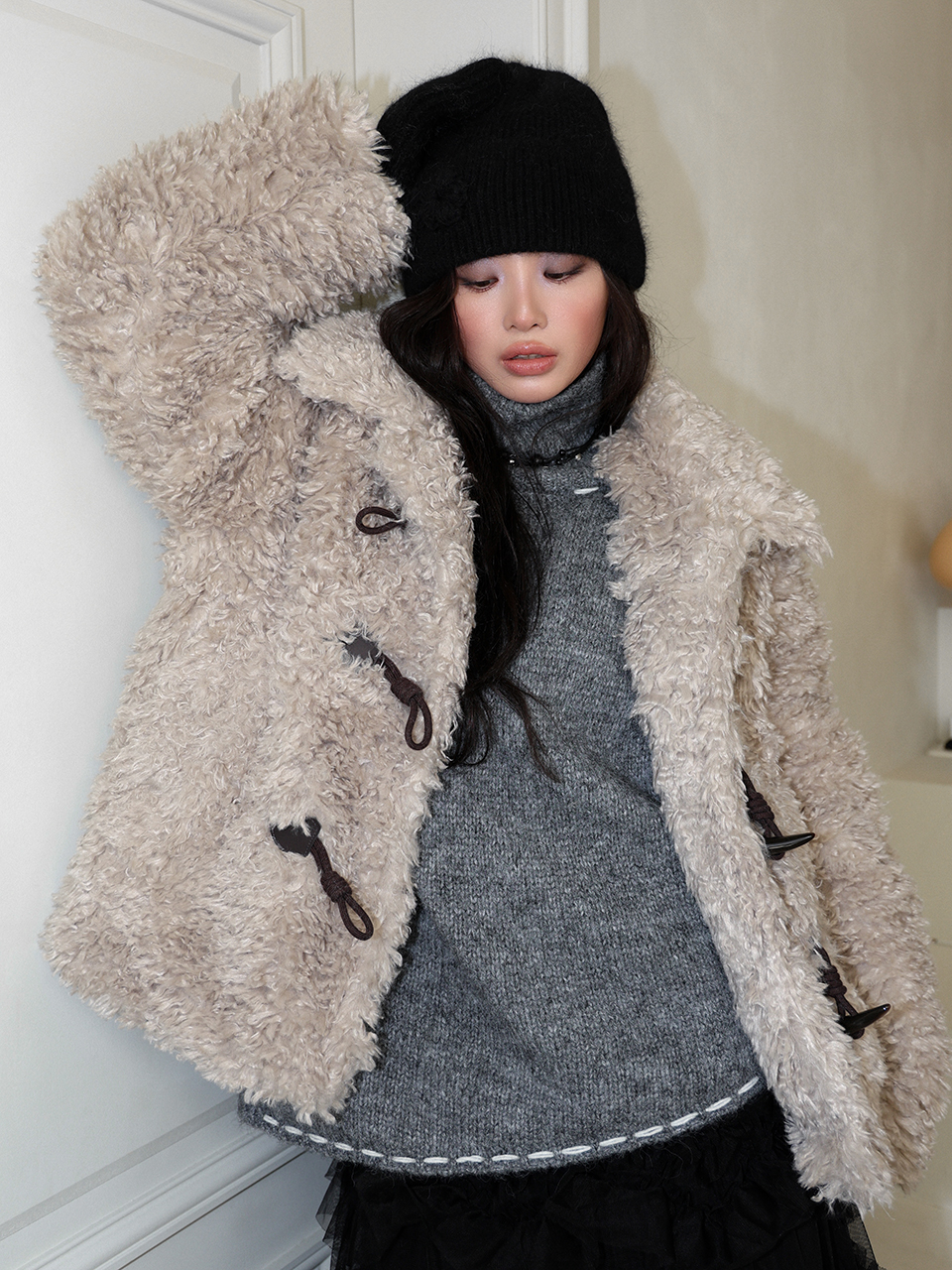 - 포근한 앙고라 조직으로 짜여진 니트 비니