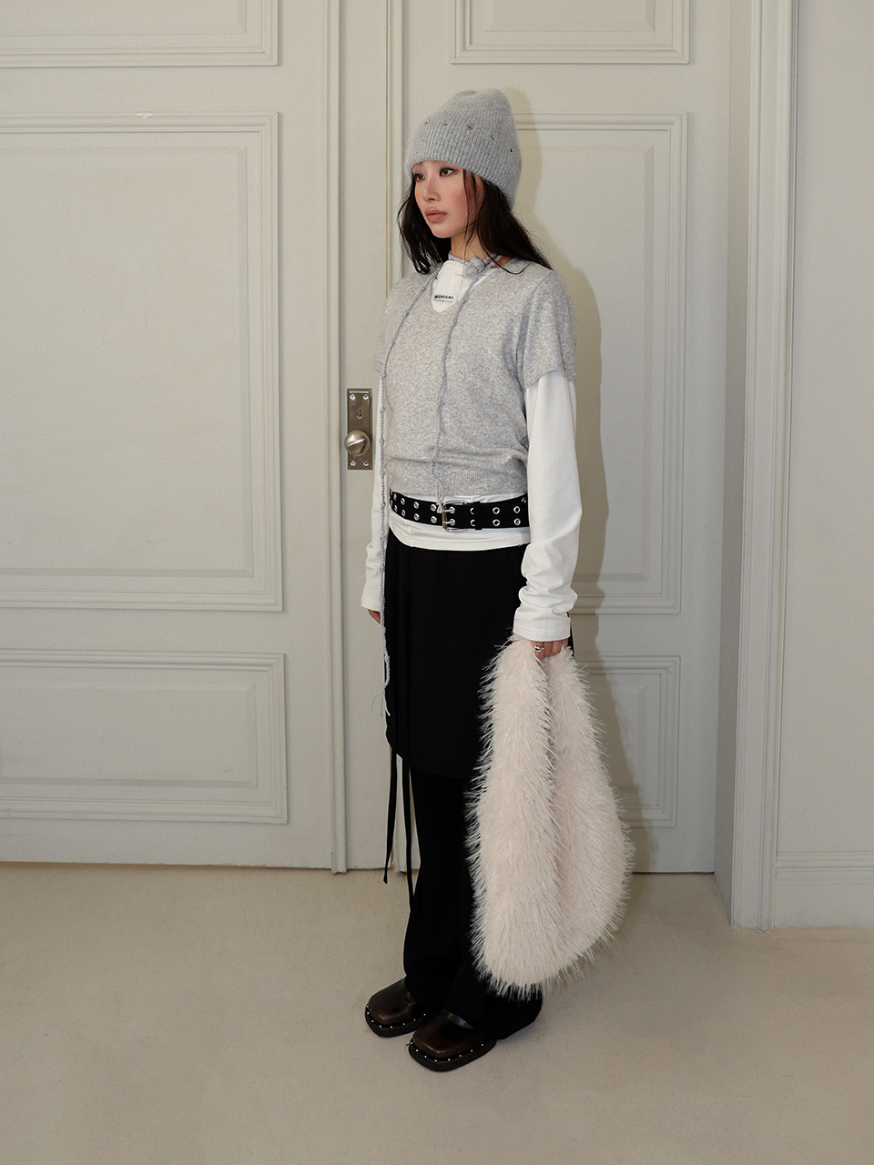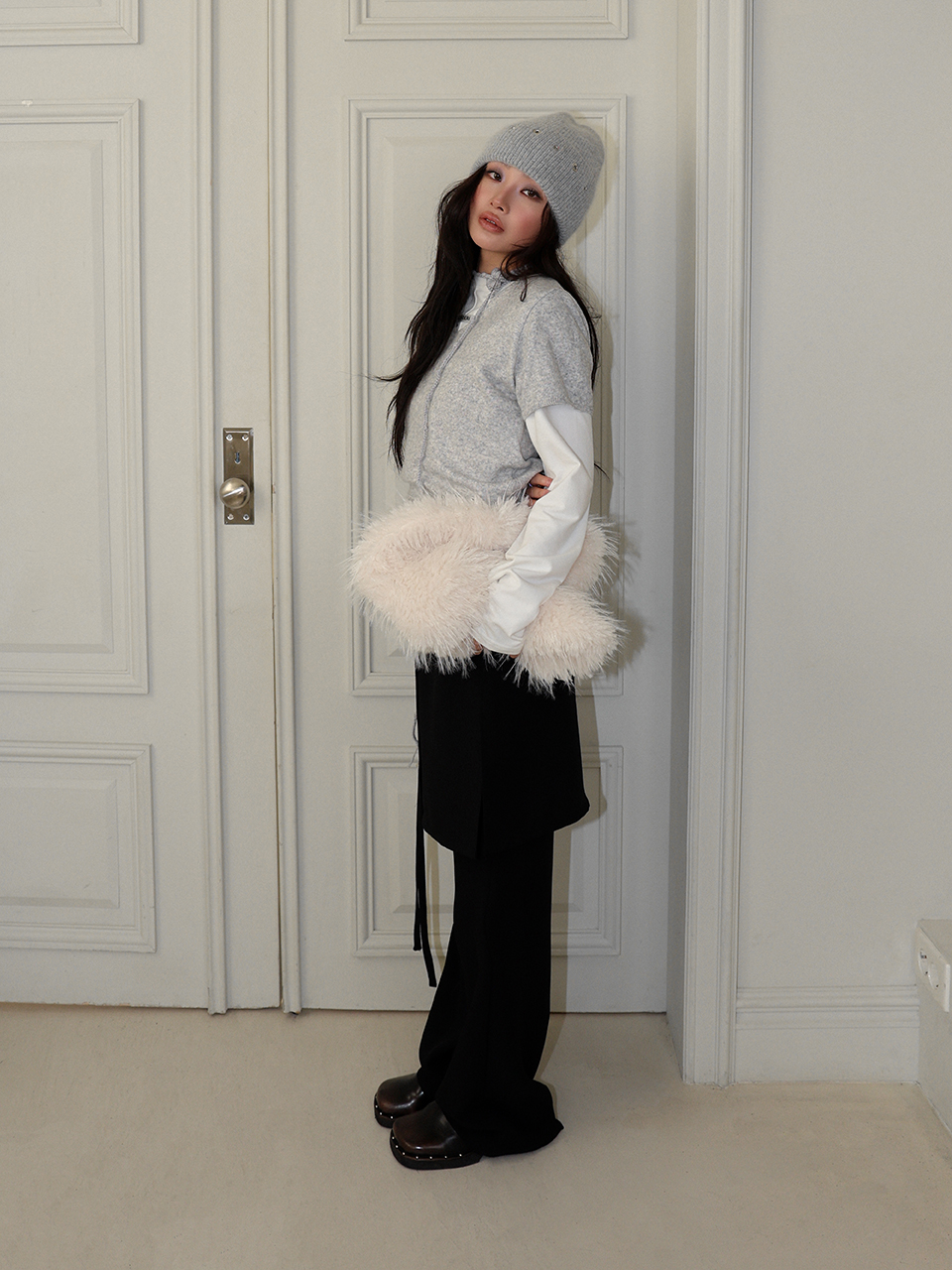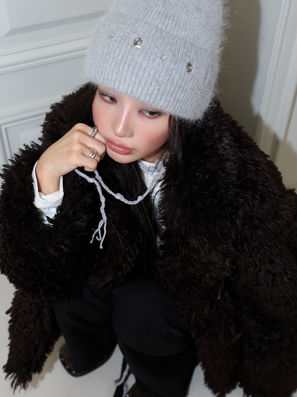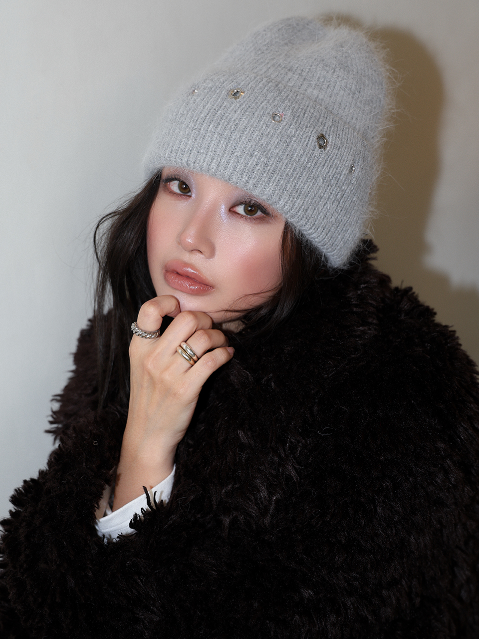 - 포근한 앙고라 조직으로 짜여진 니트 비니