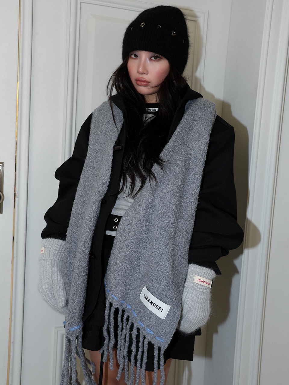 - 머플러 하단 민더리 직조라벨 포인트