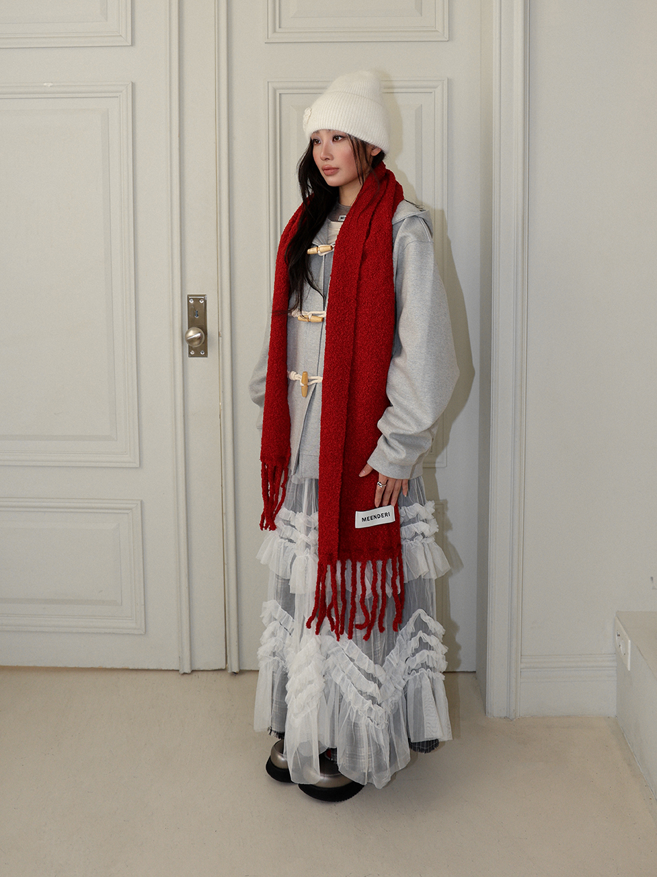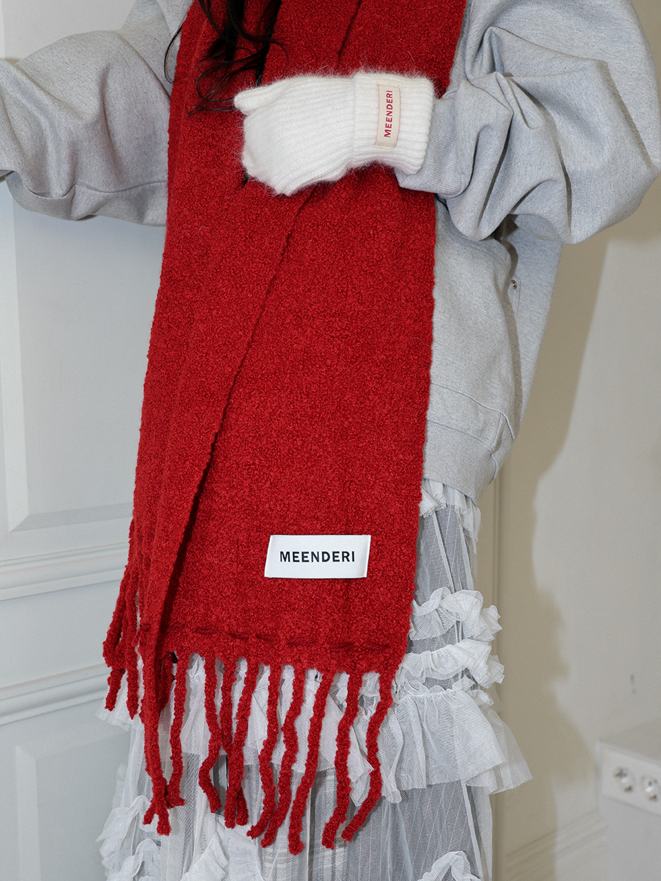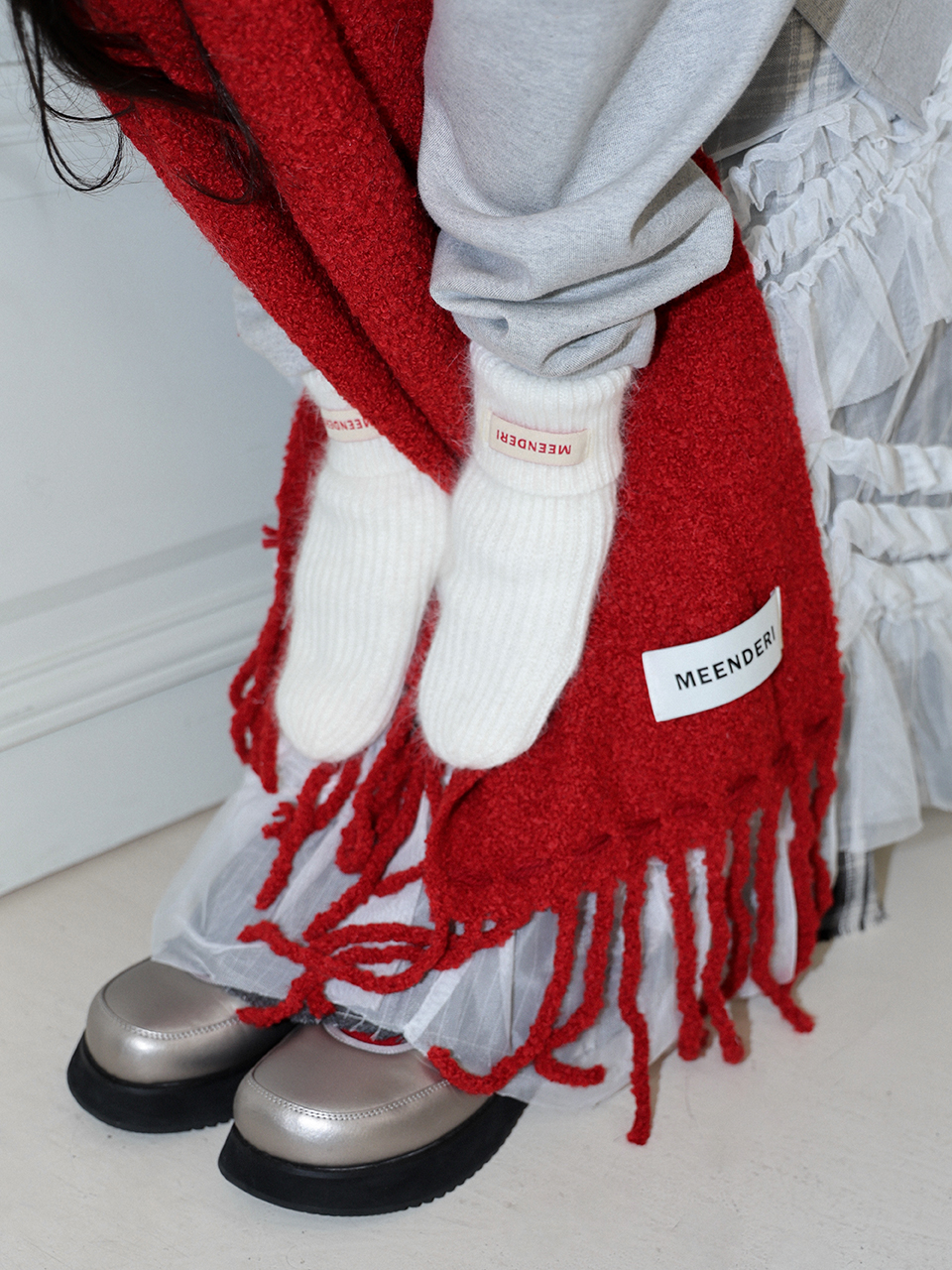 - 머플러 하단 민더리 직조라벨 포인트