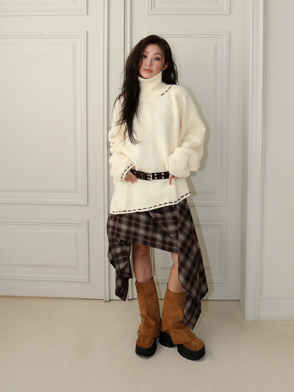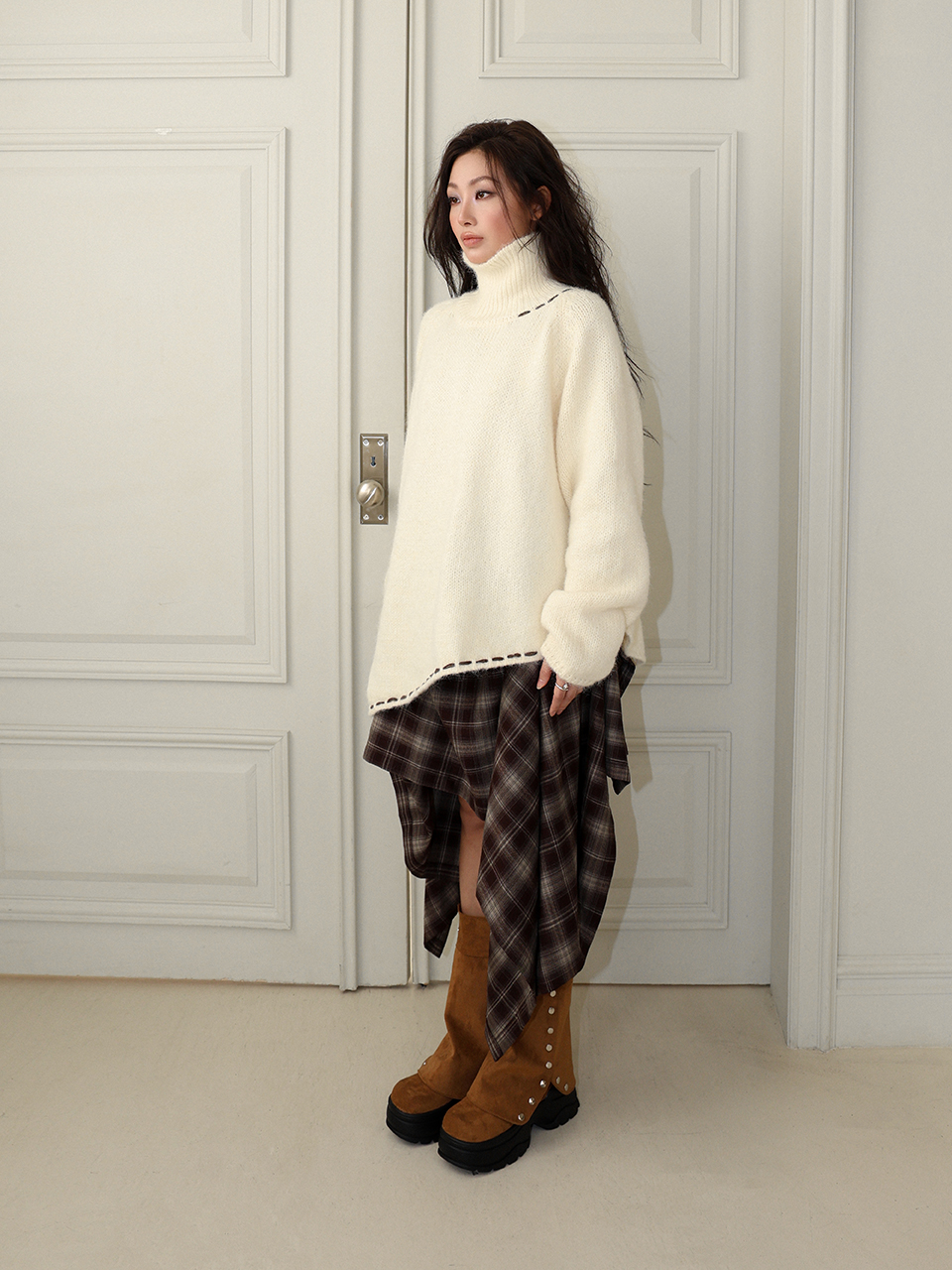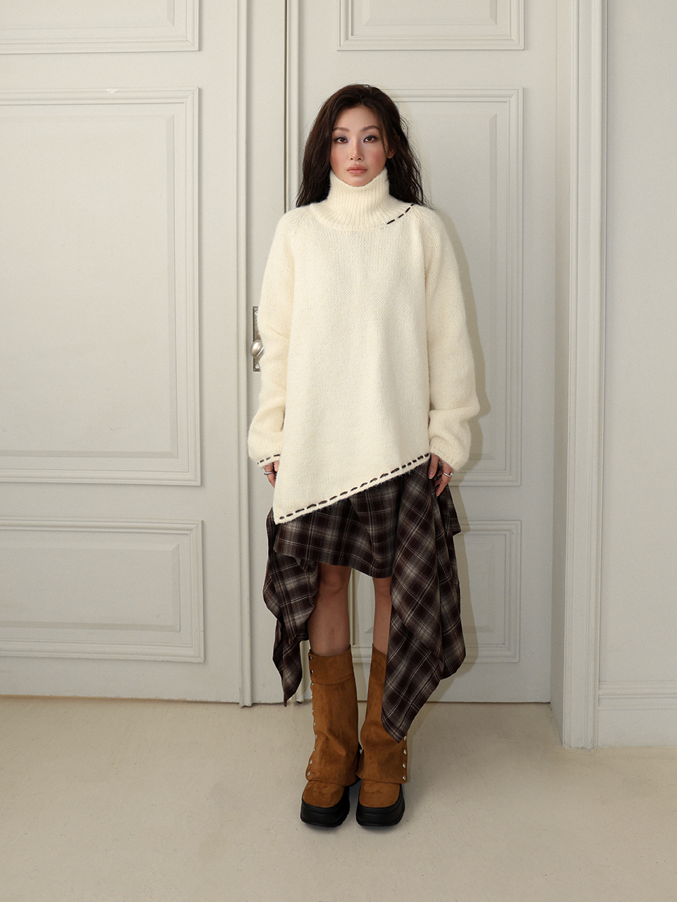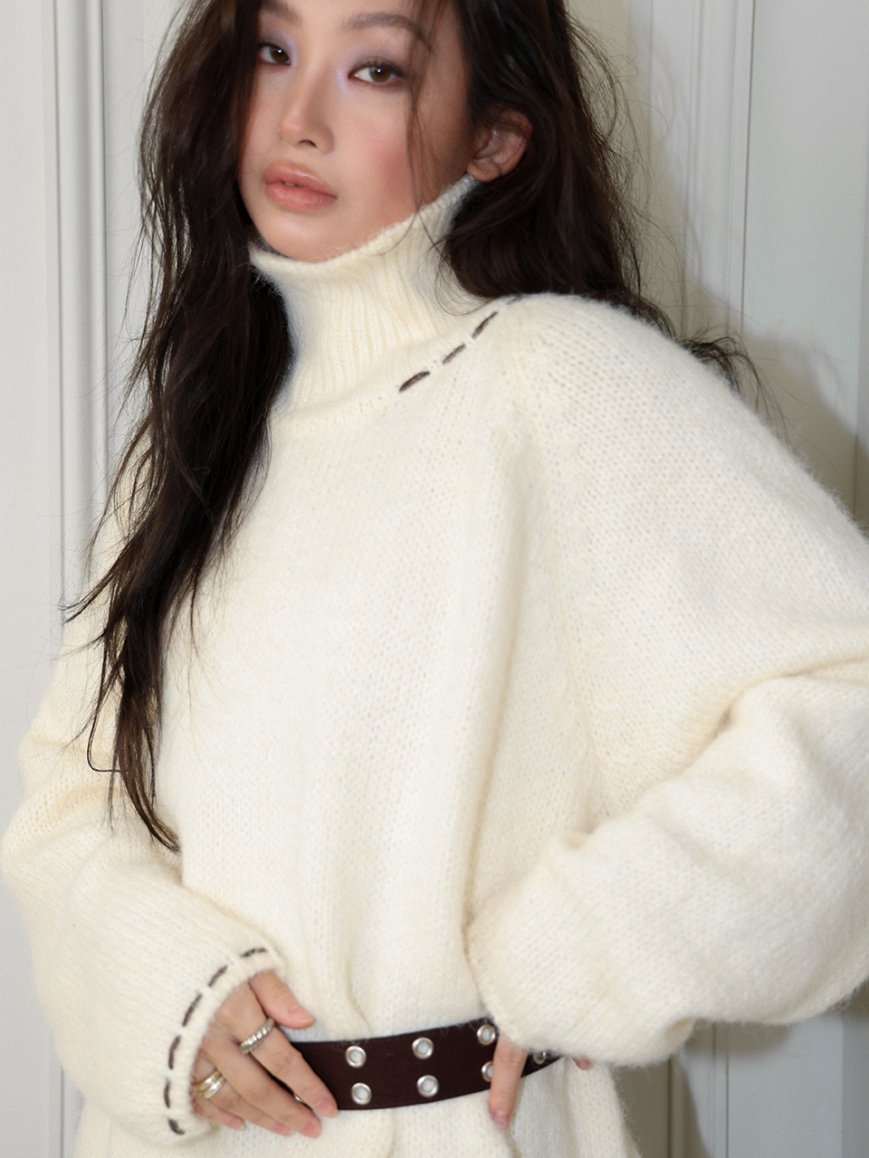 - 레글런 디자인의 터틀넥 스웨터
