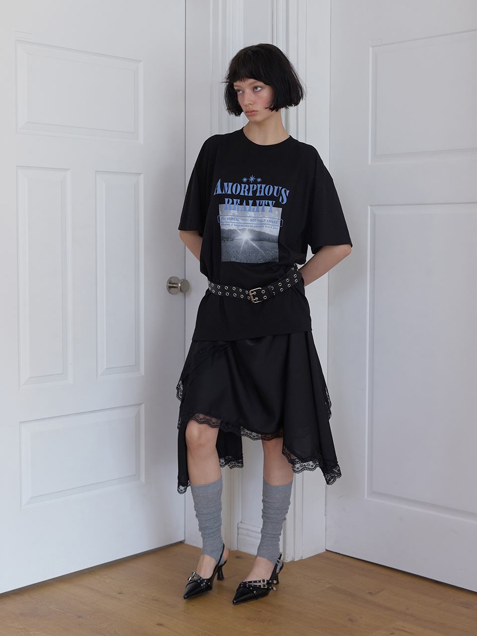 - 컬렉션 무드를 담은 그래픽이 돋보이는 오버사이즈 반팔 티셔츠