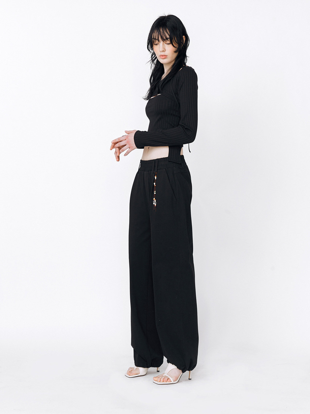 (르세라핌 카즈하 착용) (1차 리오더) MEENDERI RIBBED TOP - BLACK
