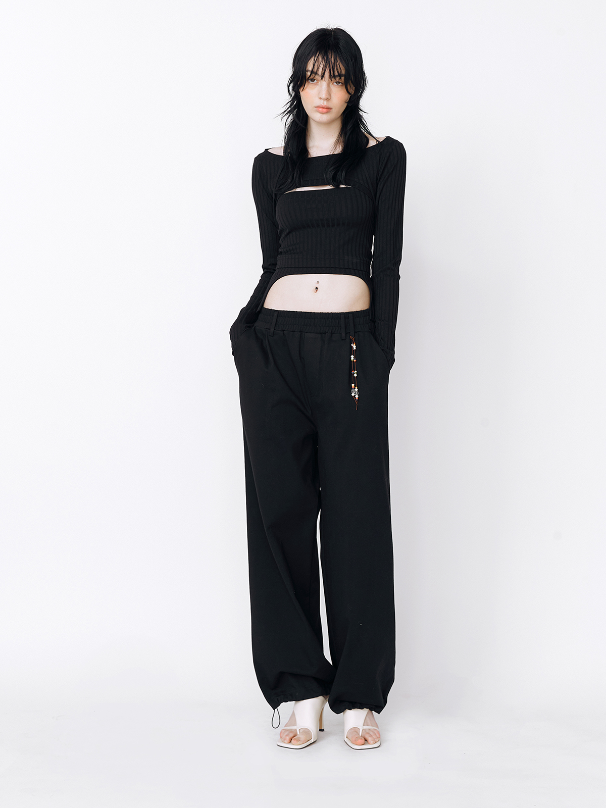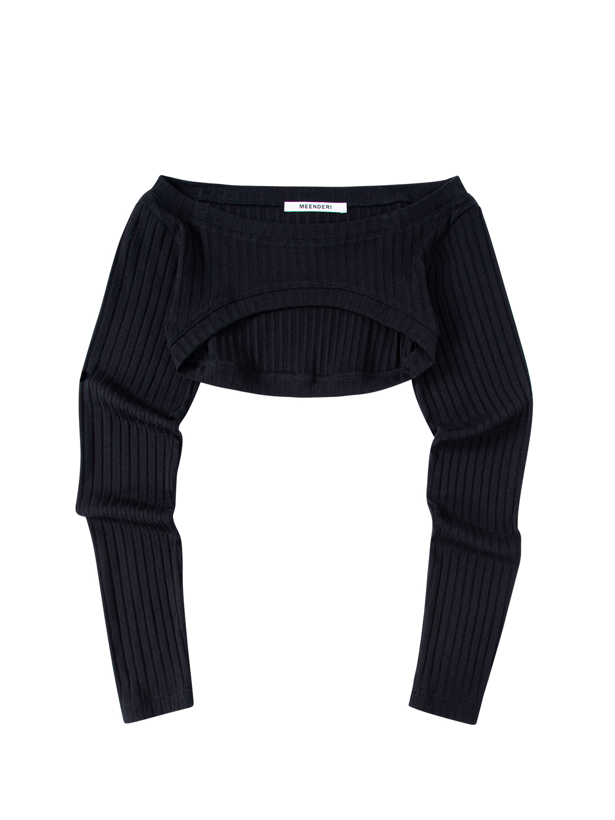 (르세라핌 카즈하 착용) OFF-SHOULDER RIBBED TOP - BLACK