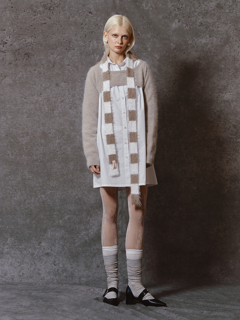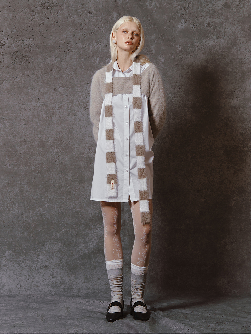 - 밀도 있는 면 폴리 혼방 소재로 제작된 롱 셔츠