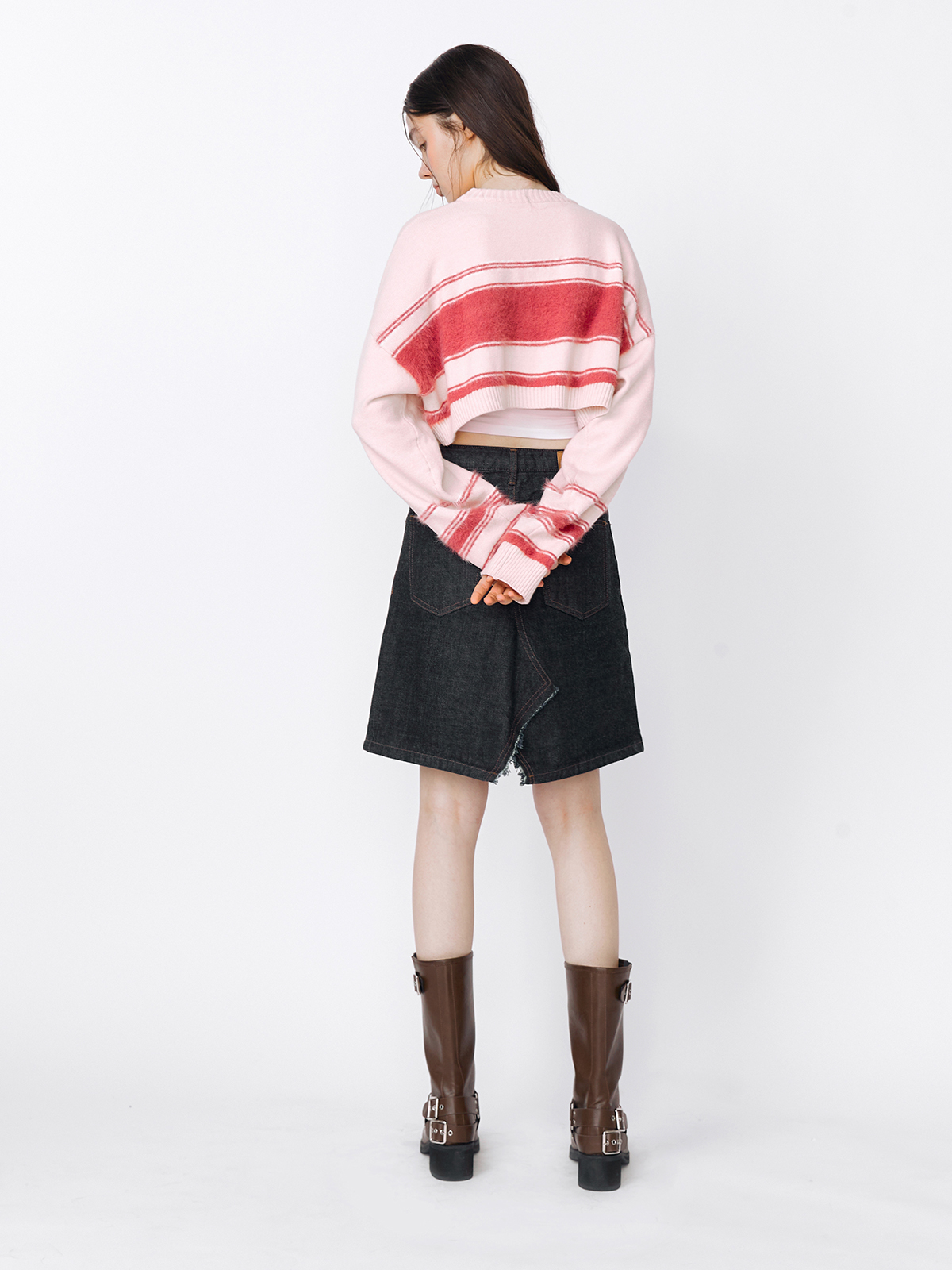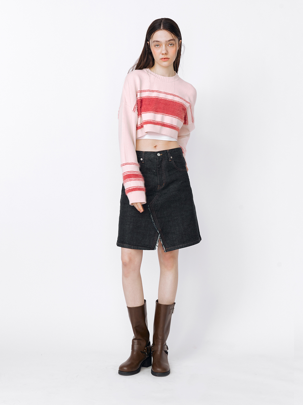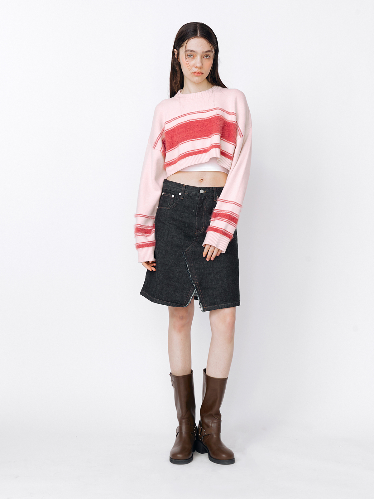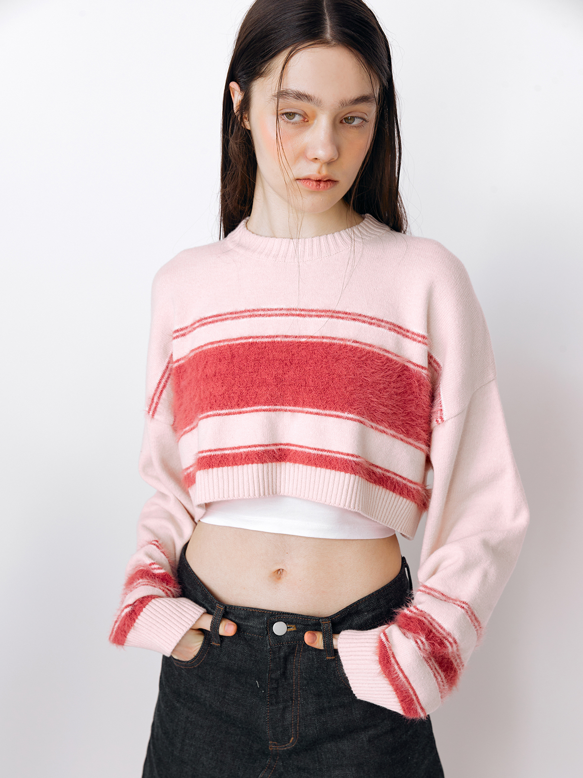 (1차 리오더) MIXED STRIPE KNIT TOP - PINK