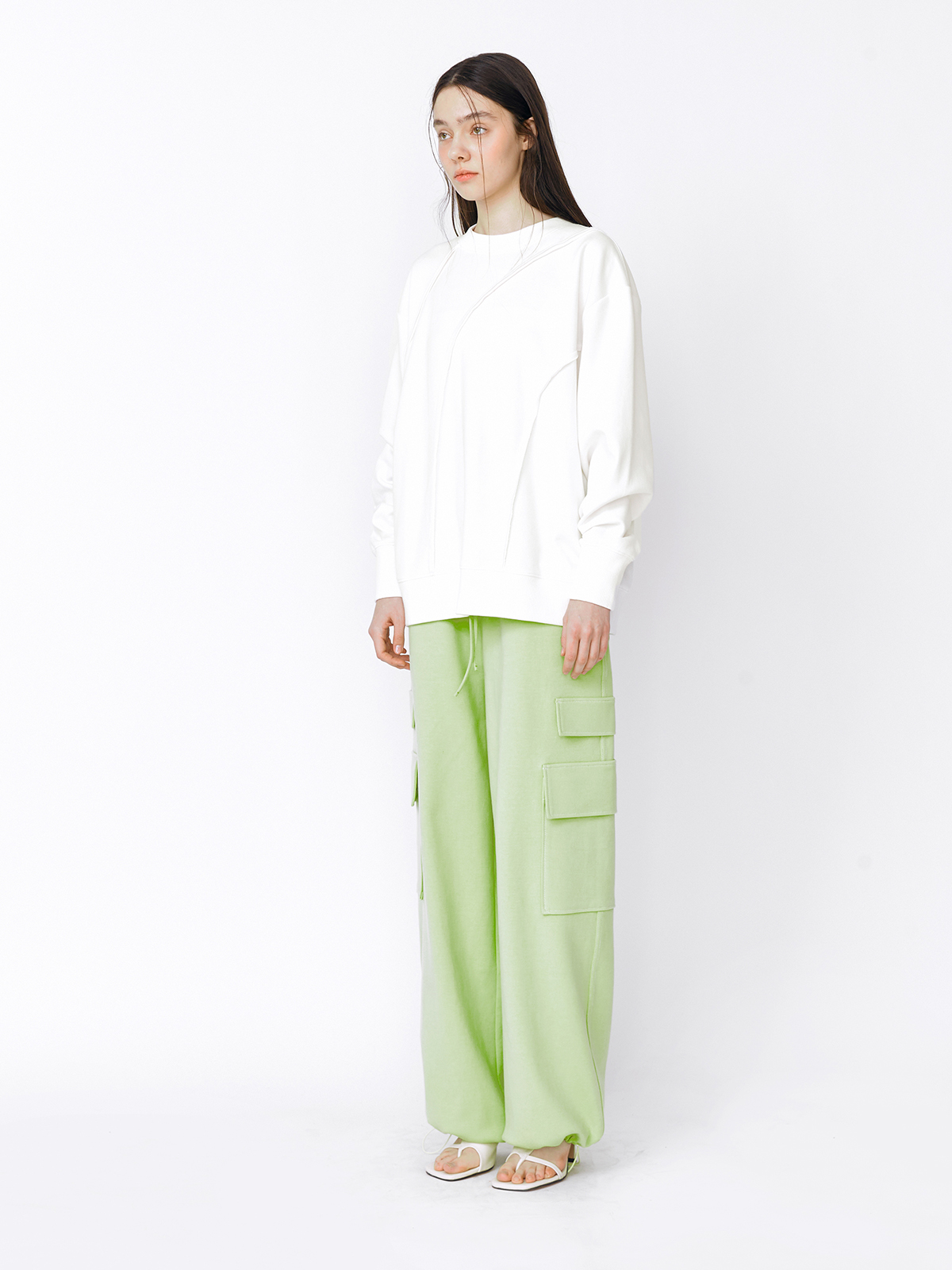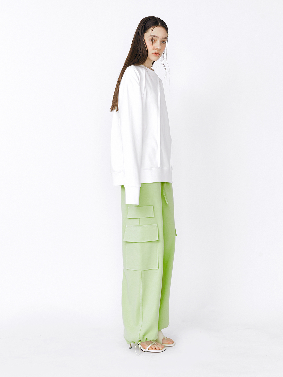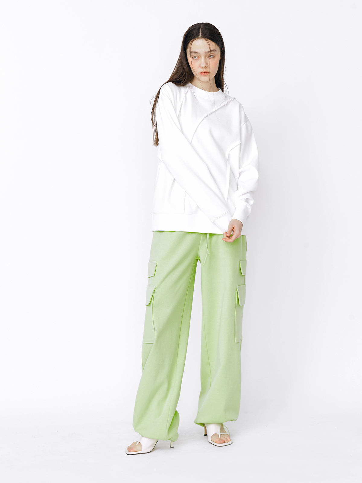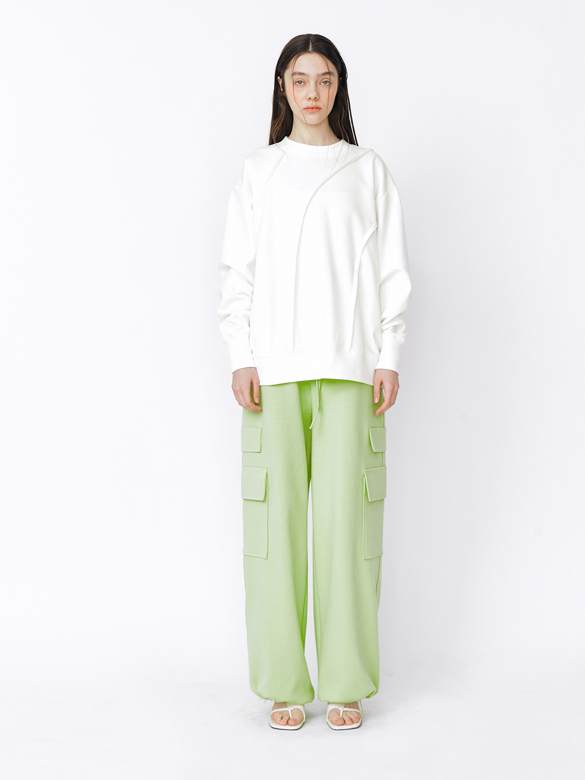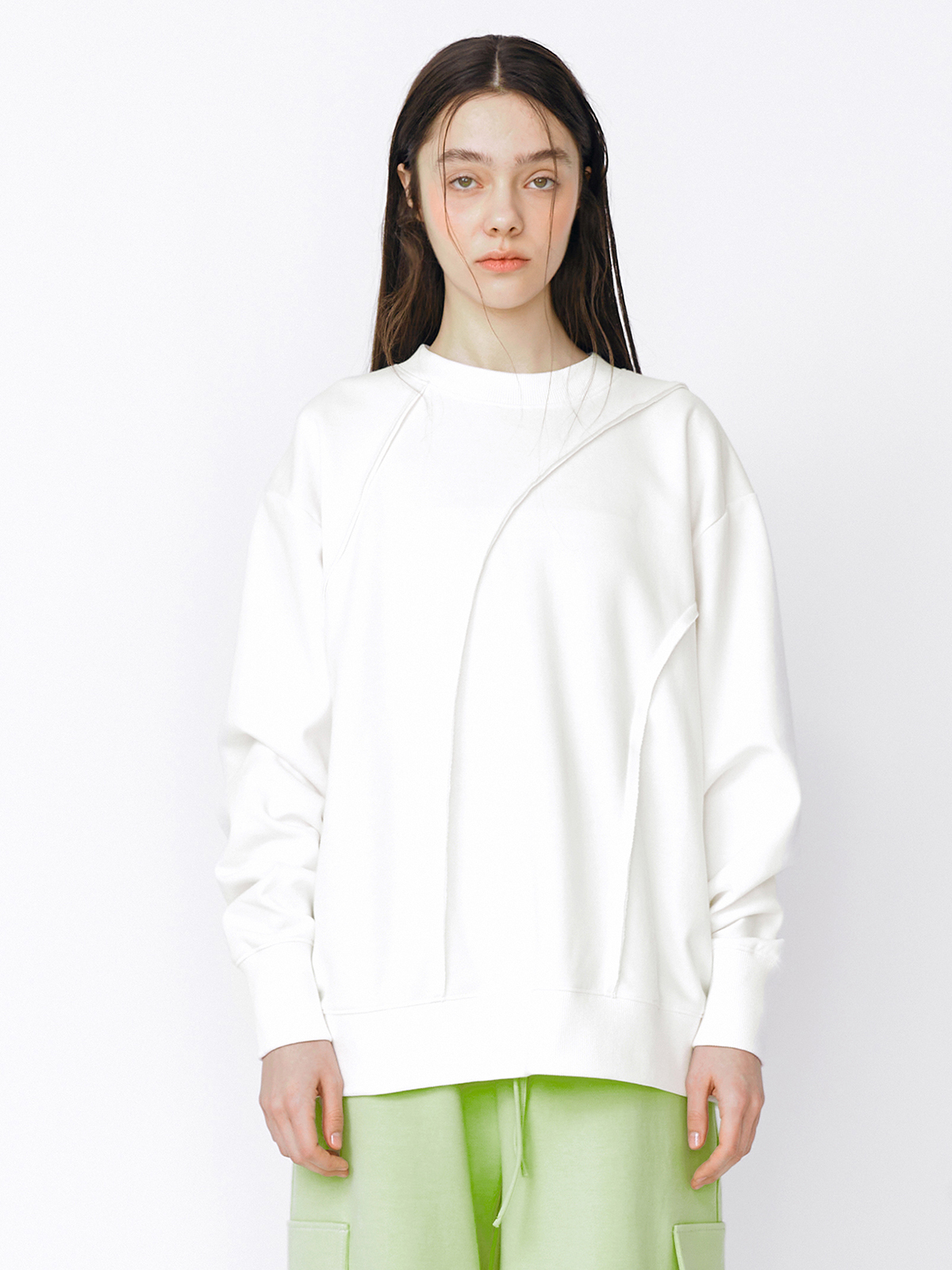 - 과감한 커팅 라인이 포인트인 스웻셔츠