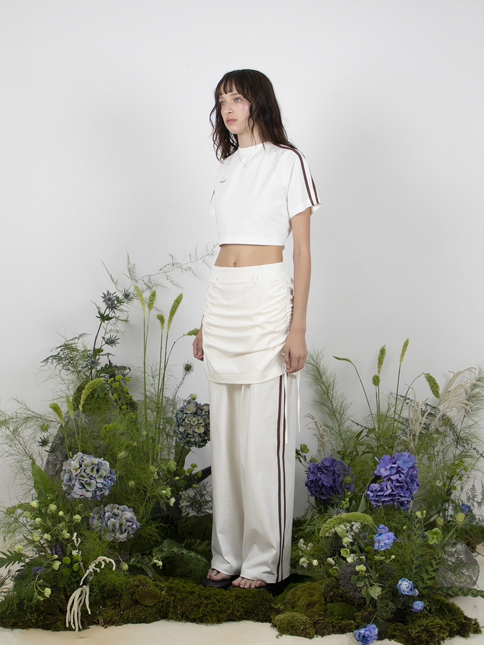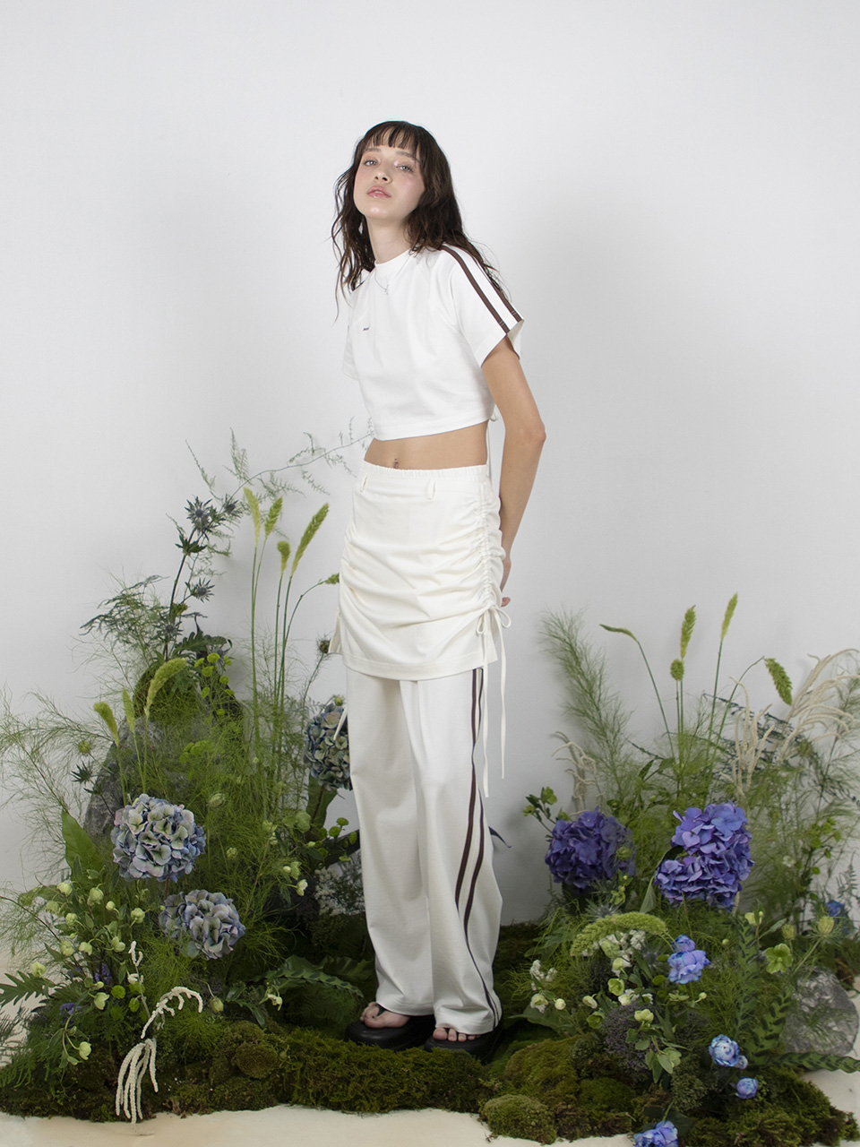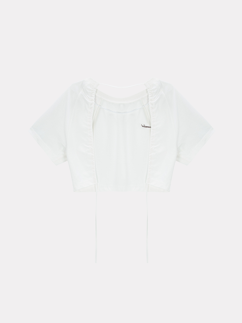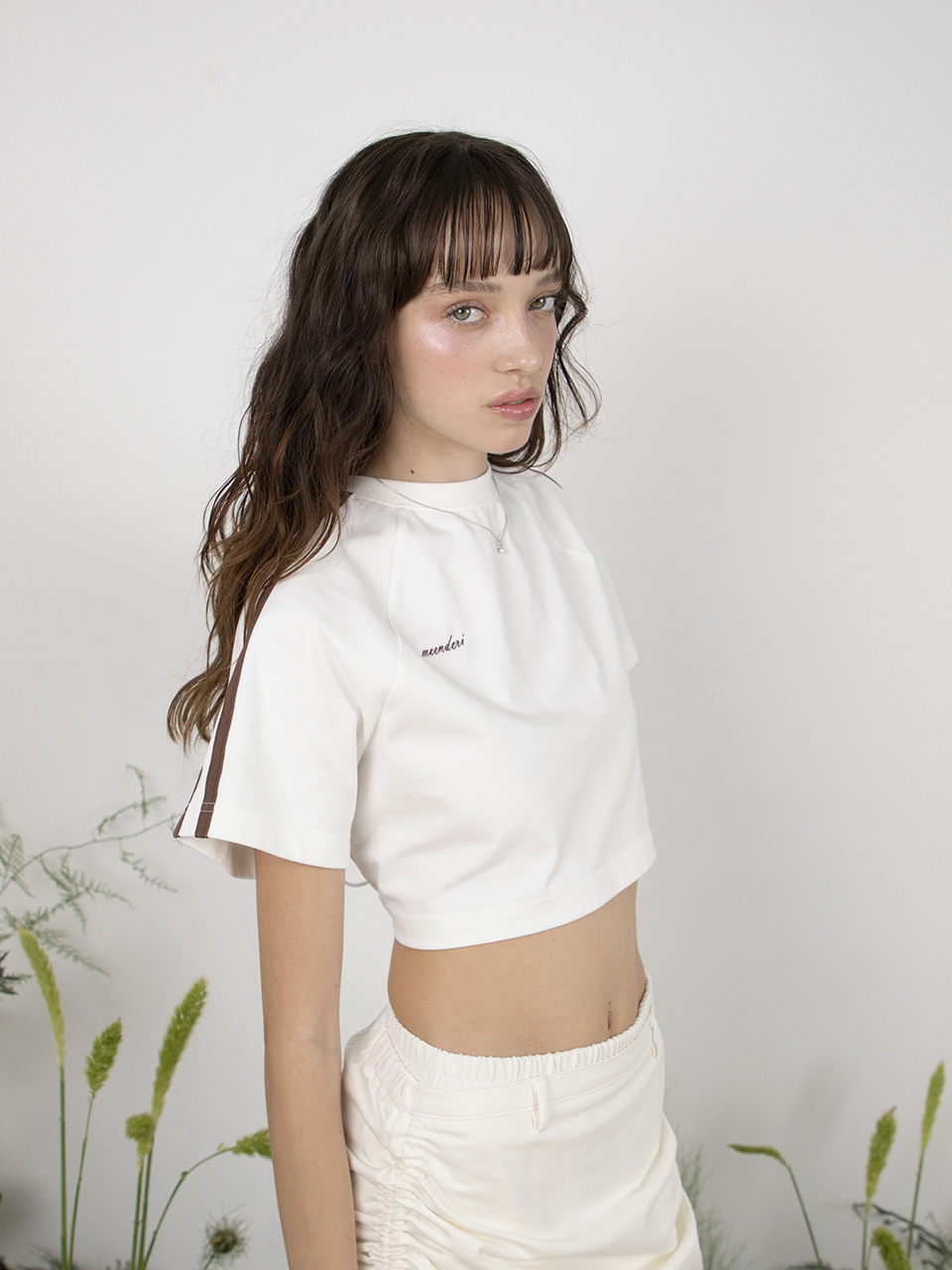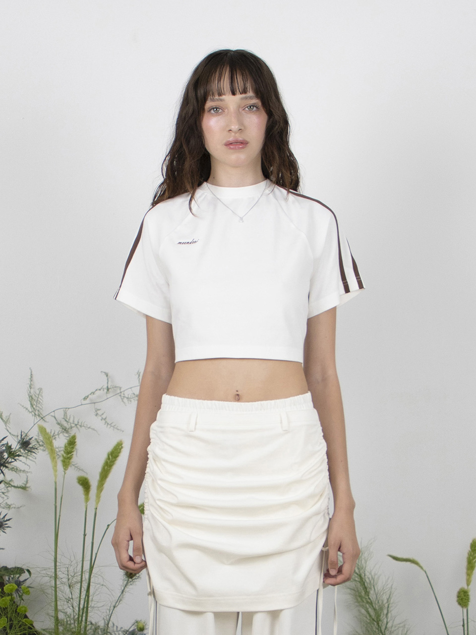 - 어깨 부분 트랙 디테일이 포인트인 크롭 티셔츠
