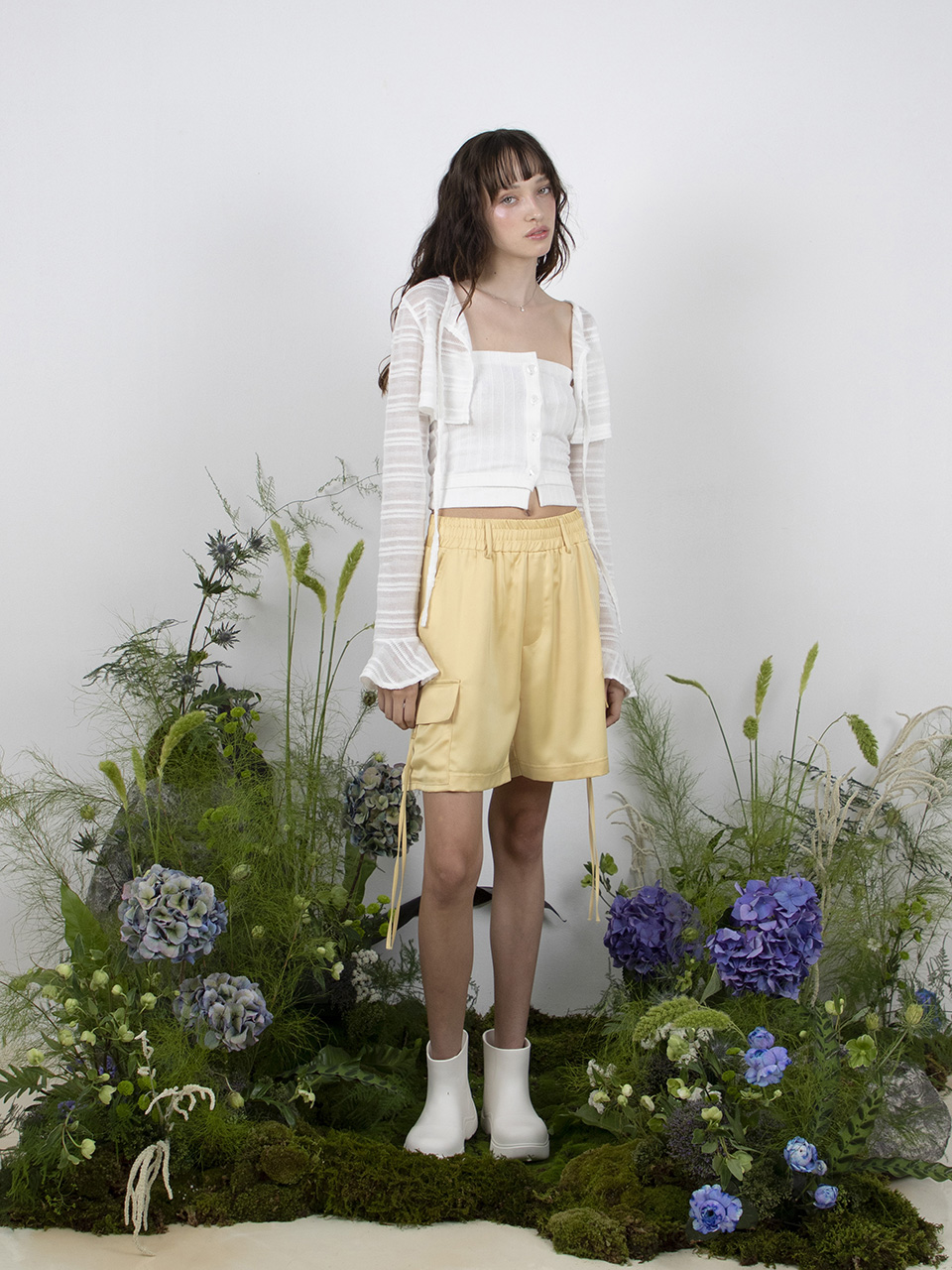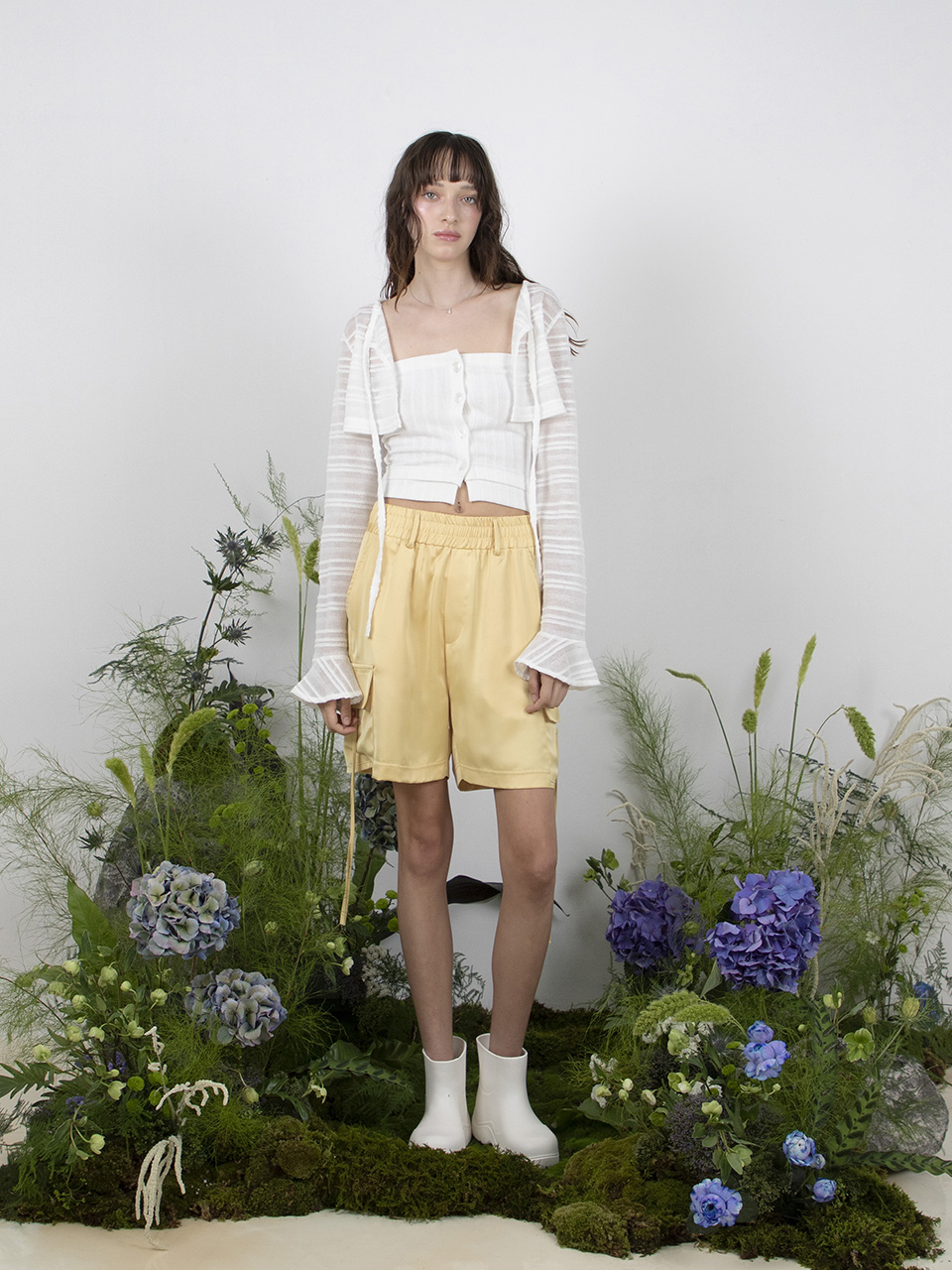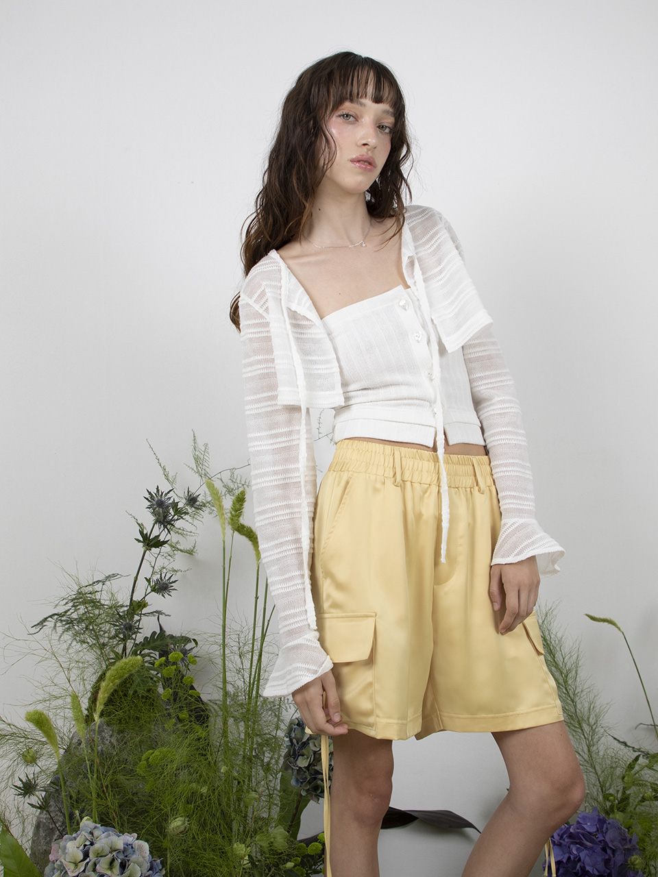 (지니 착용) RIBBED SHELL BUTTON TOP - WHITE