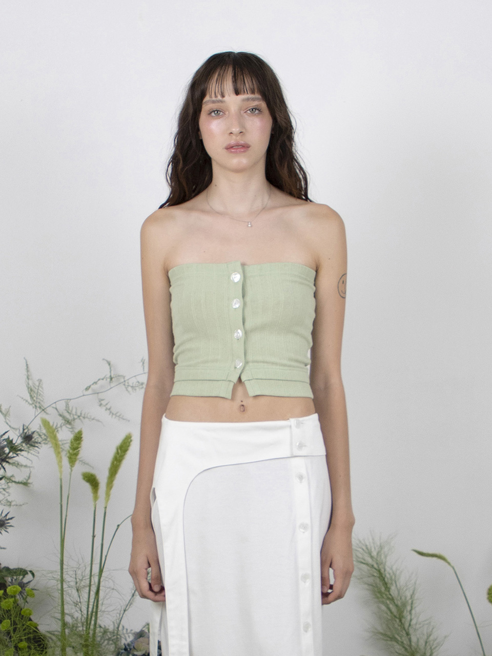 - 밑단 레이어드 디테일이 특징인 튜브탑