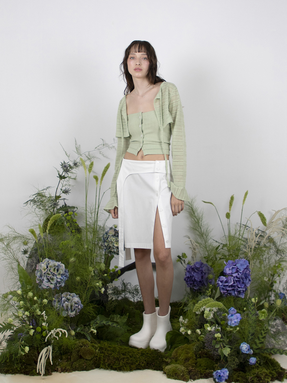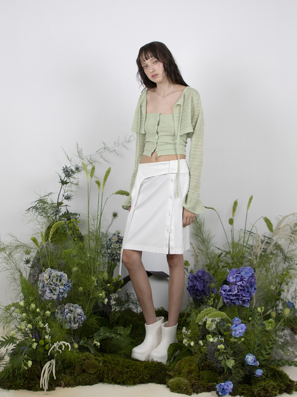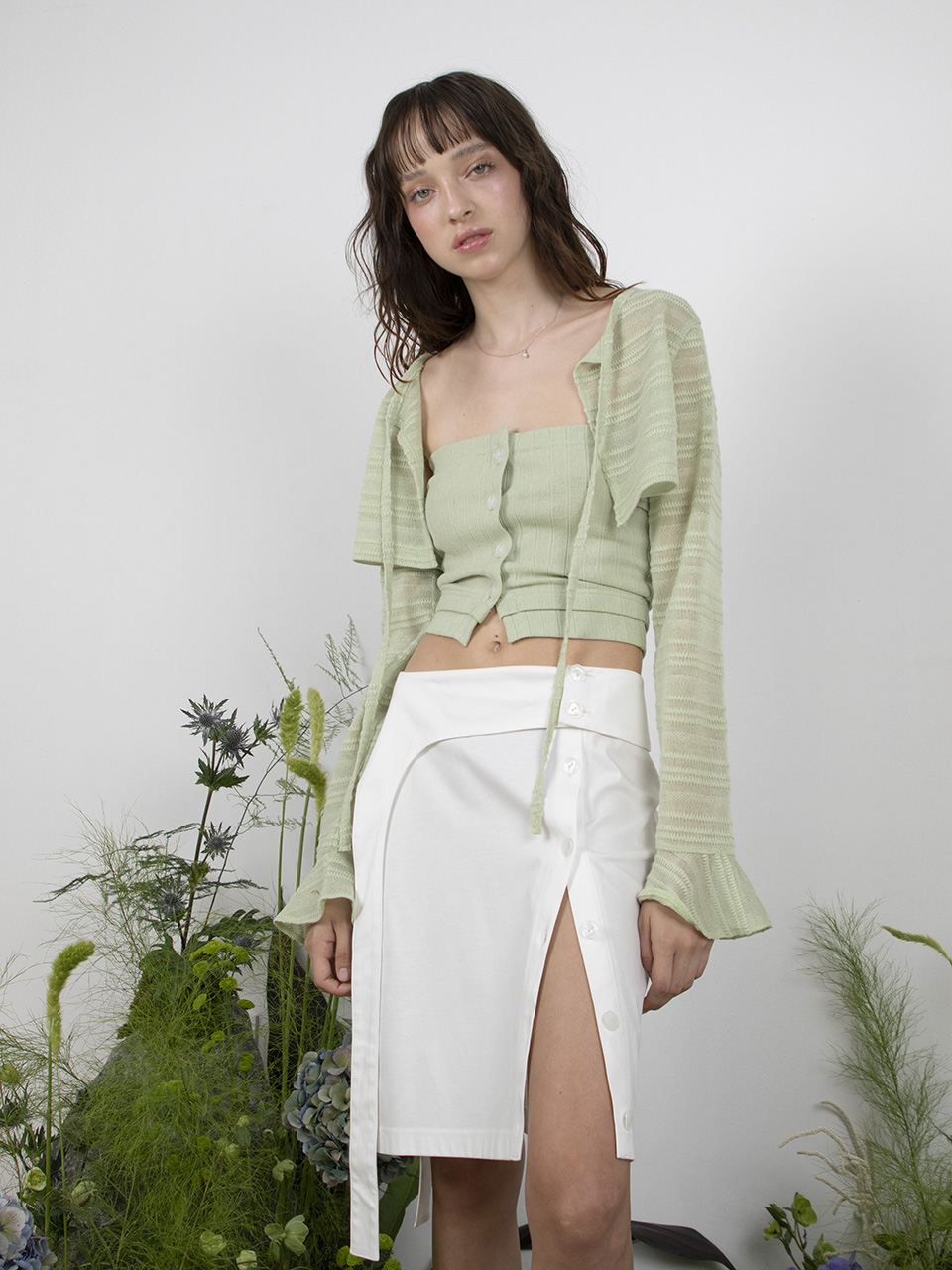 - 세로 골지 조직으로 슬림한 실루엣 연출 가능