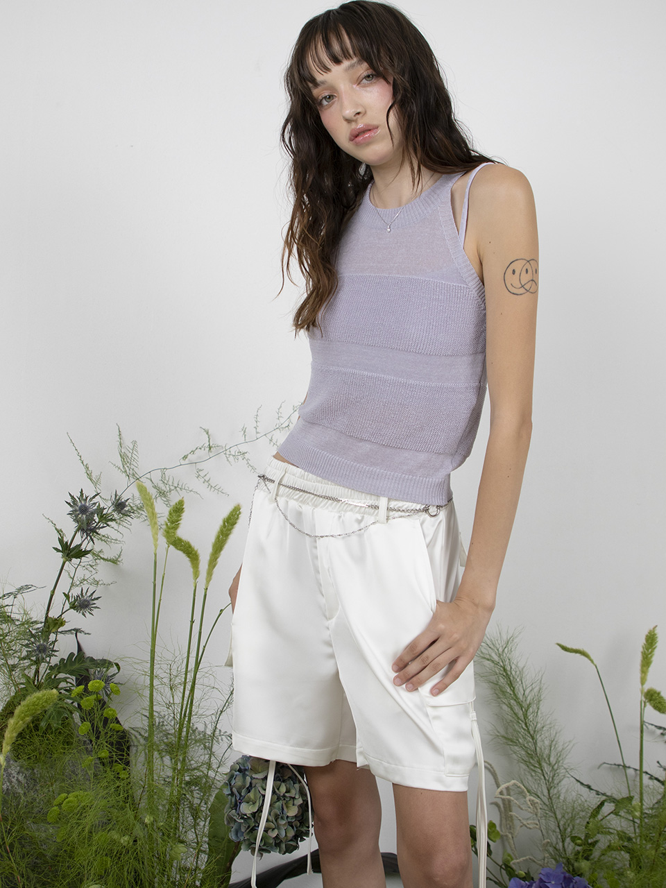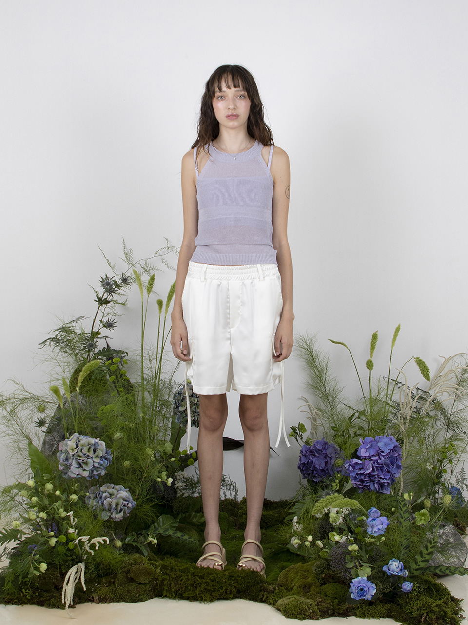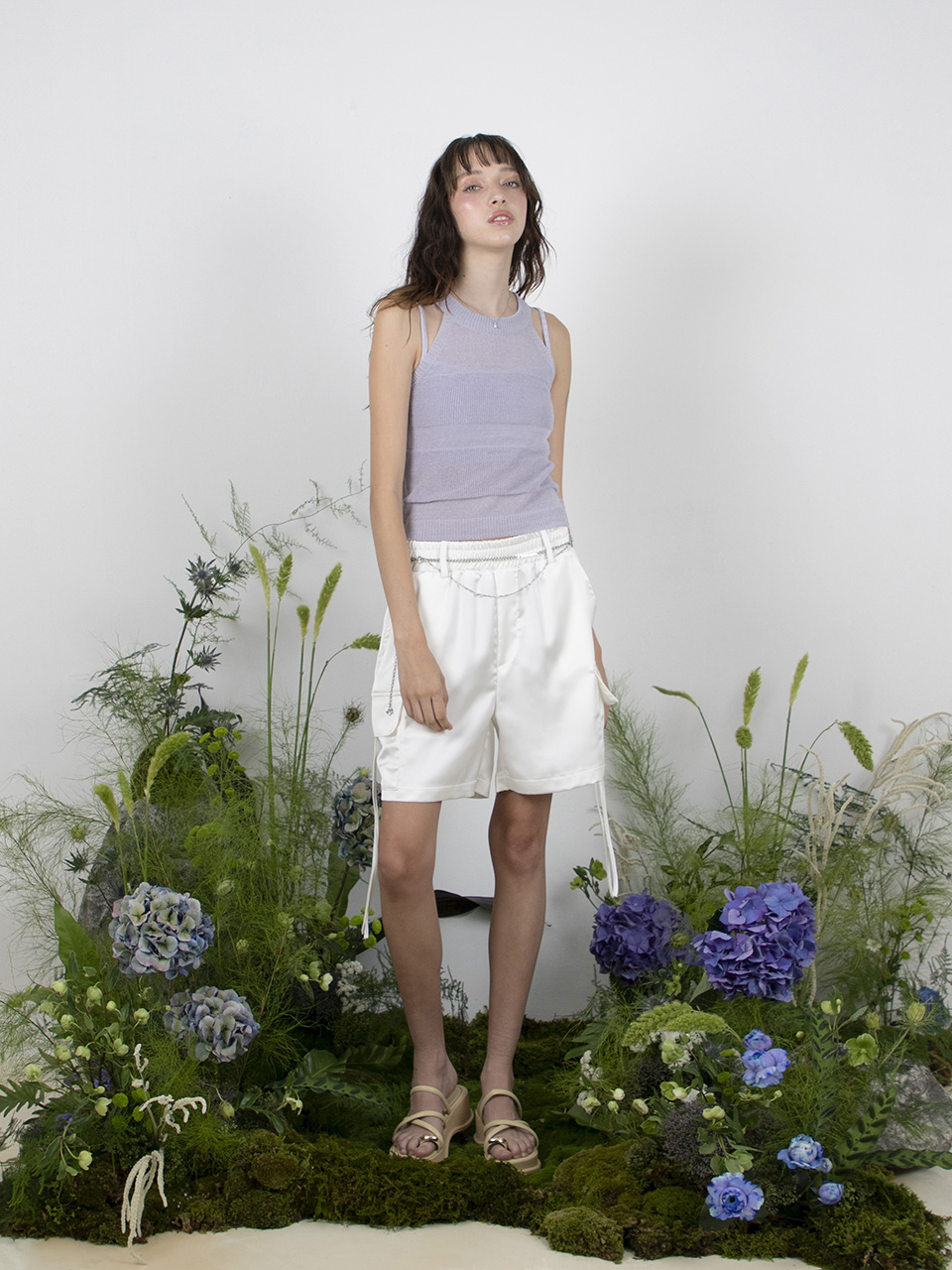 - 고급스럽고 은은한 광택감의 새틴 원단으로 제작된 숏 팬츠