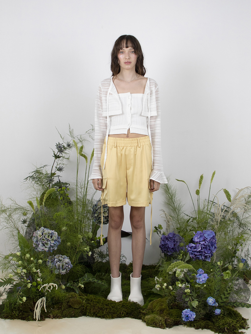 - 고급스럽고 은은한 광택감의 새틴 원단으로 제작된 숏 팬츠