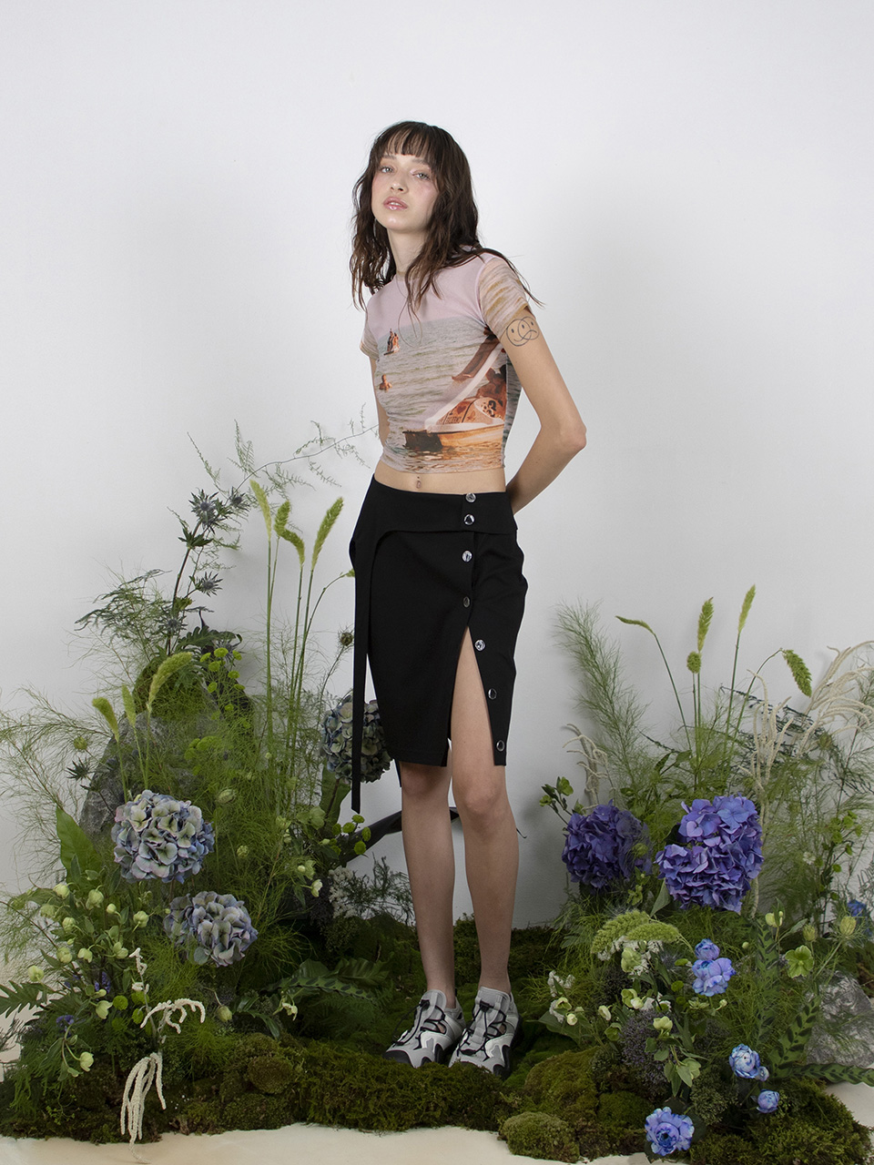 - 밑단 버튼 오픈 클로징으로 슬릿 연출 가능