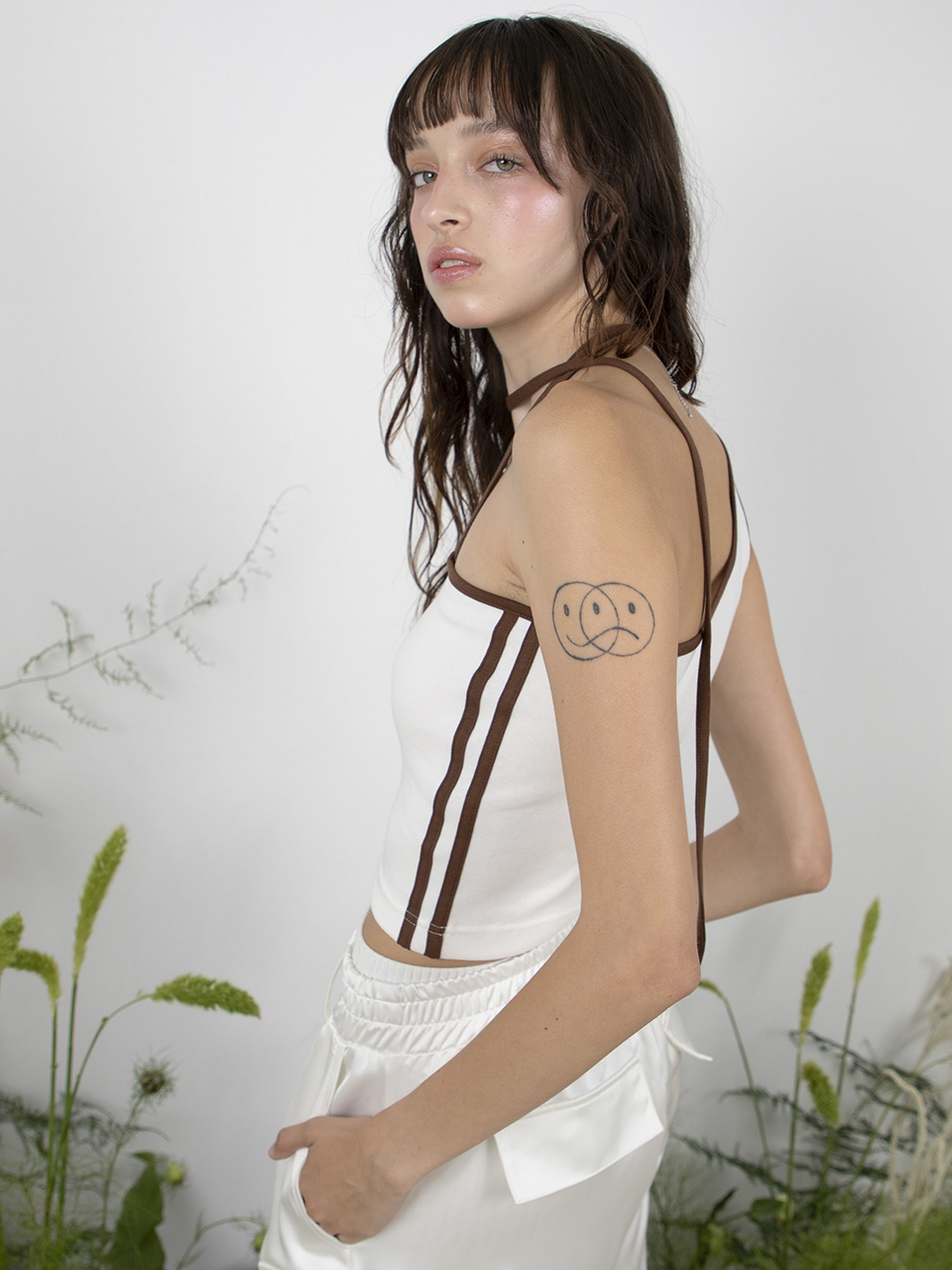 (뉴진스 혜인, 에스파 닝닝 착용) TRACK UNBALANCE SLEEVELESS TOP - WHITE