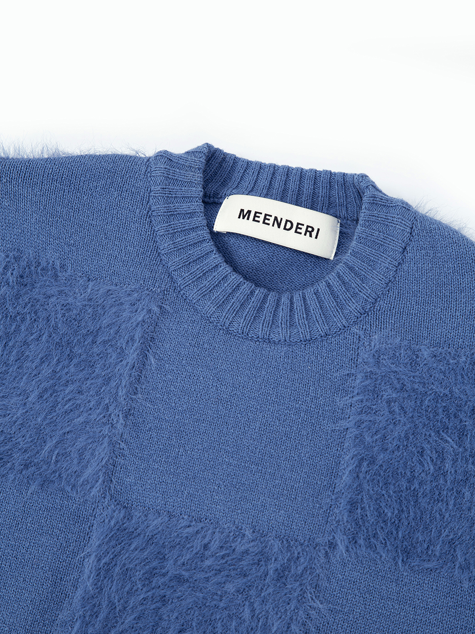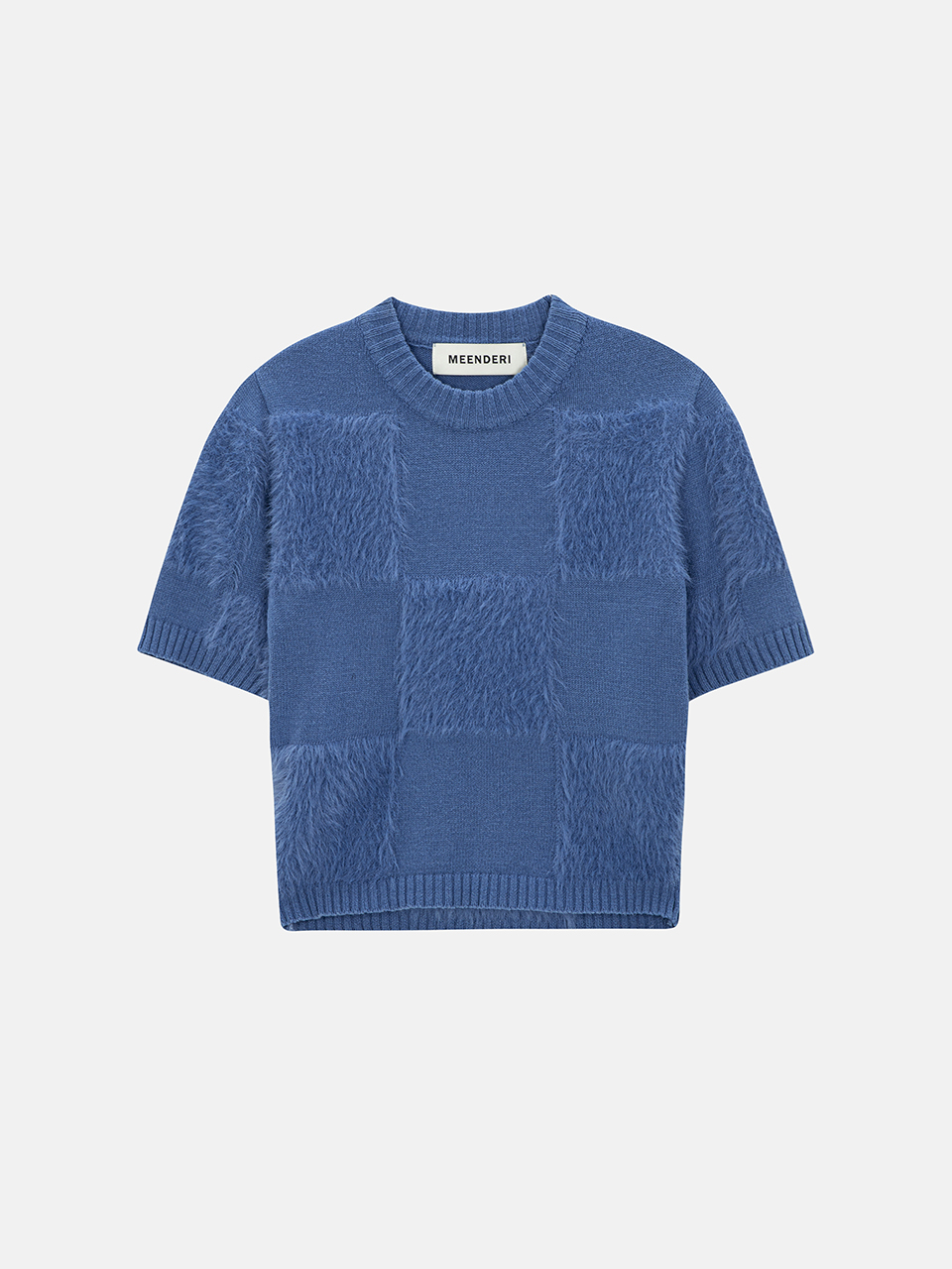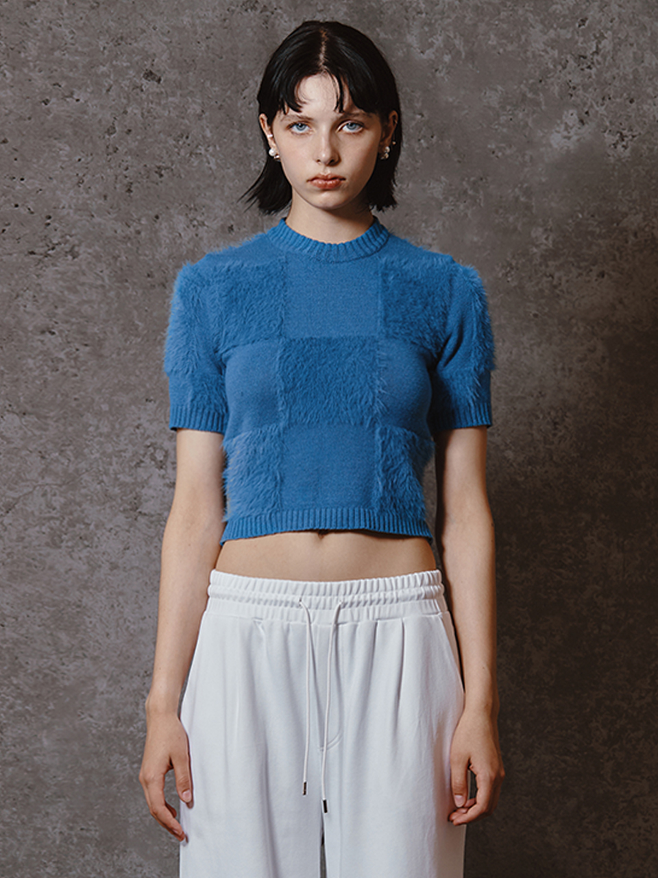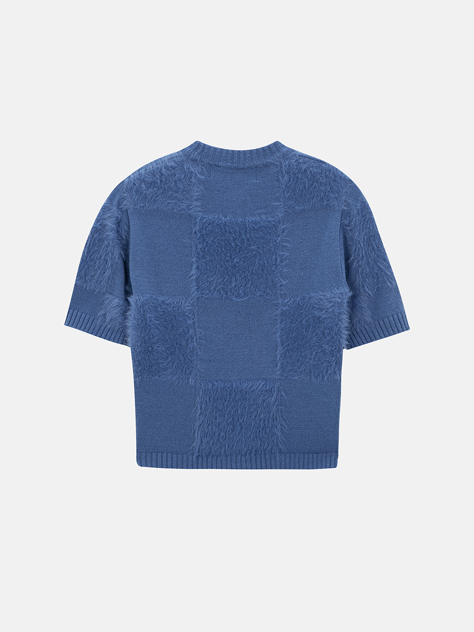 SOFT CHECKERBOARD KNIT TOP - BLUE