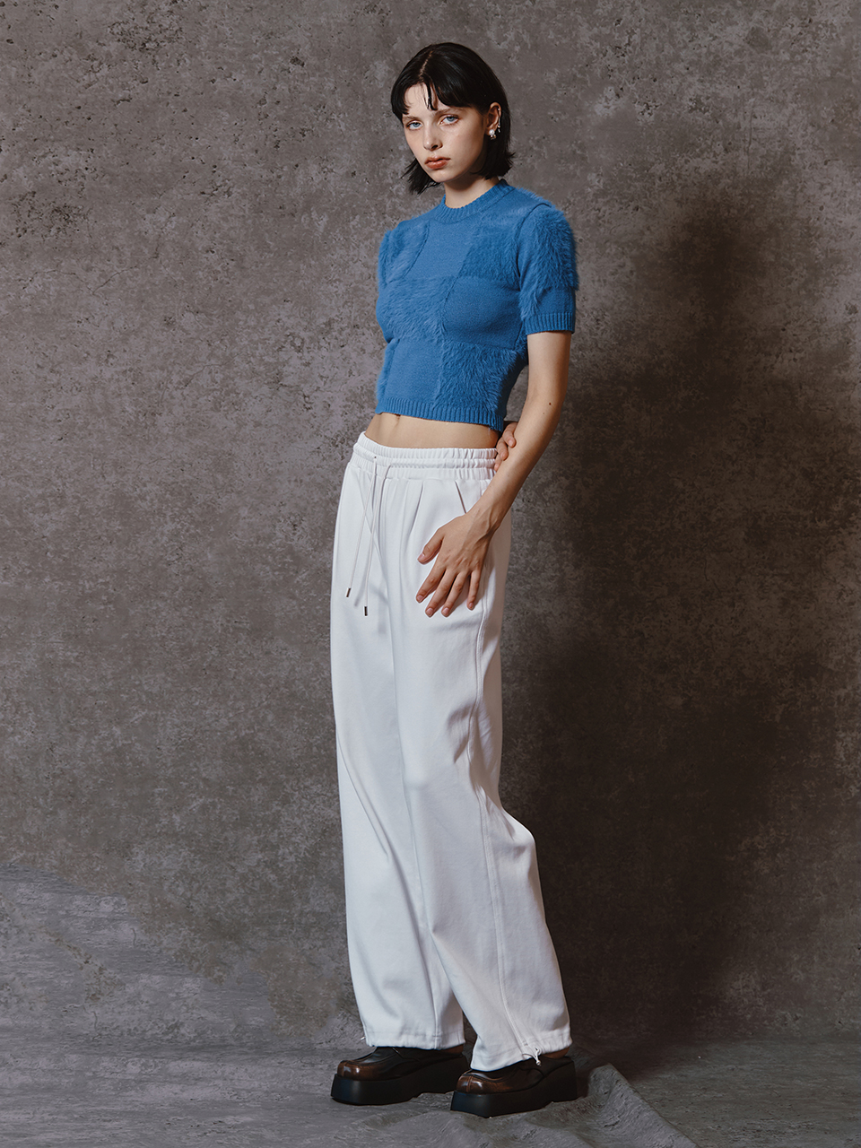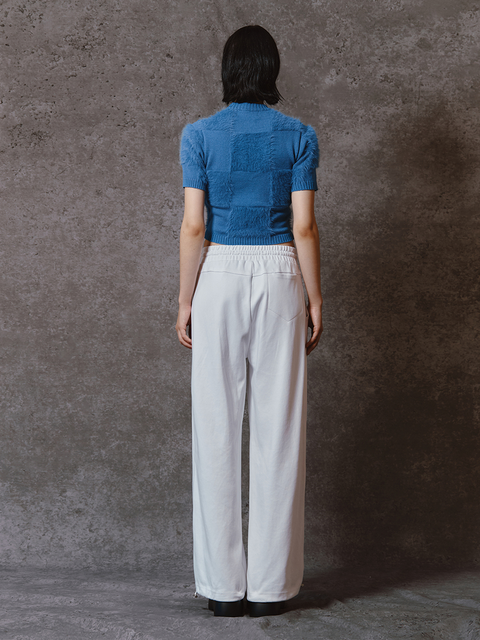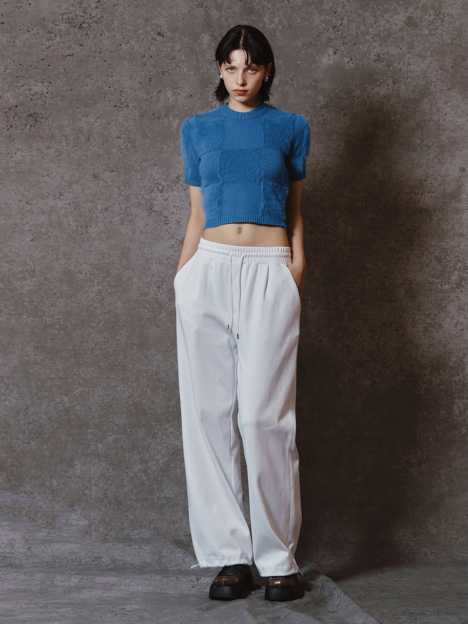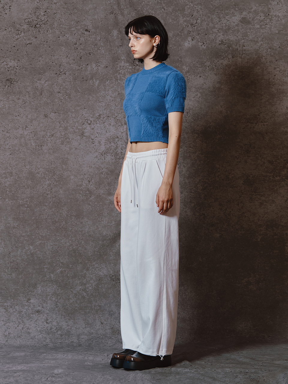 SOFT CHECKERBOARD KNIT TOP - BLUE