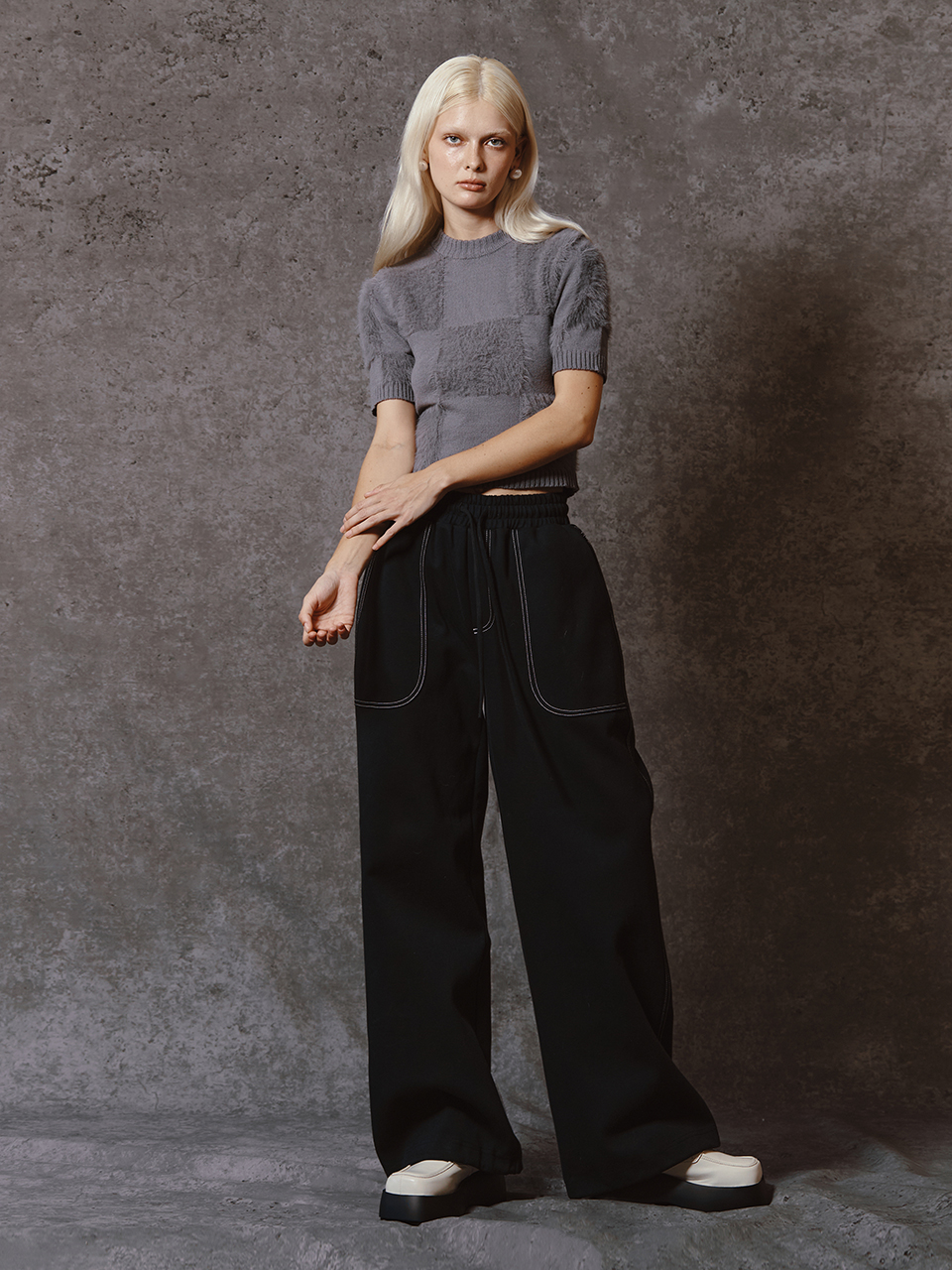 - 양 사이드 라운드 포켓 디테일이 특징인 해비 조거팬츠