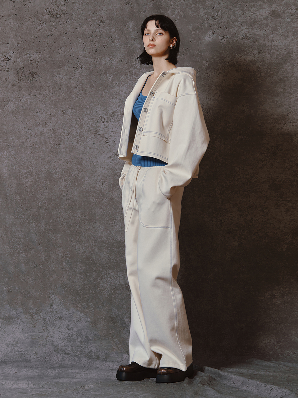 - 양 사이드 라운드 포켓 디테일이 특징인 해비 조거팬츠