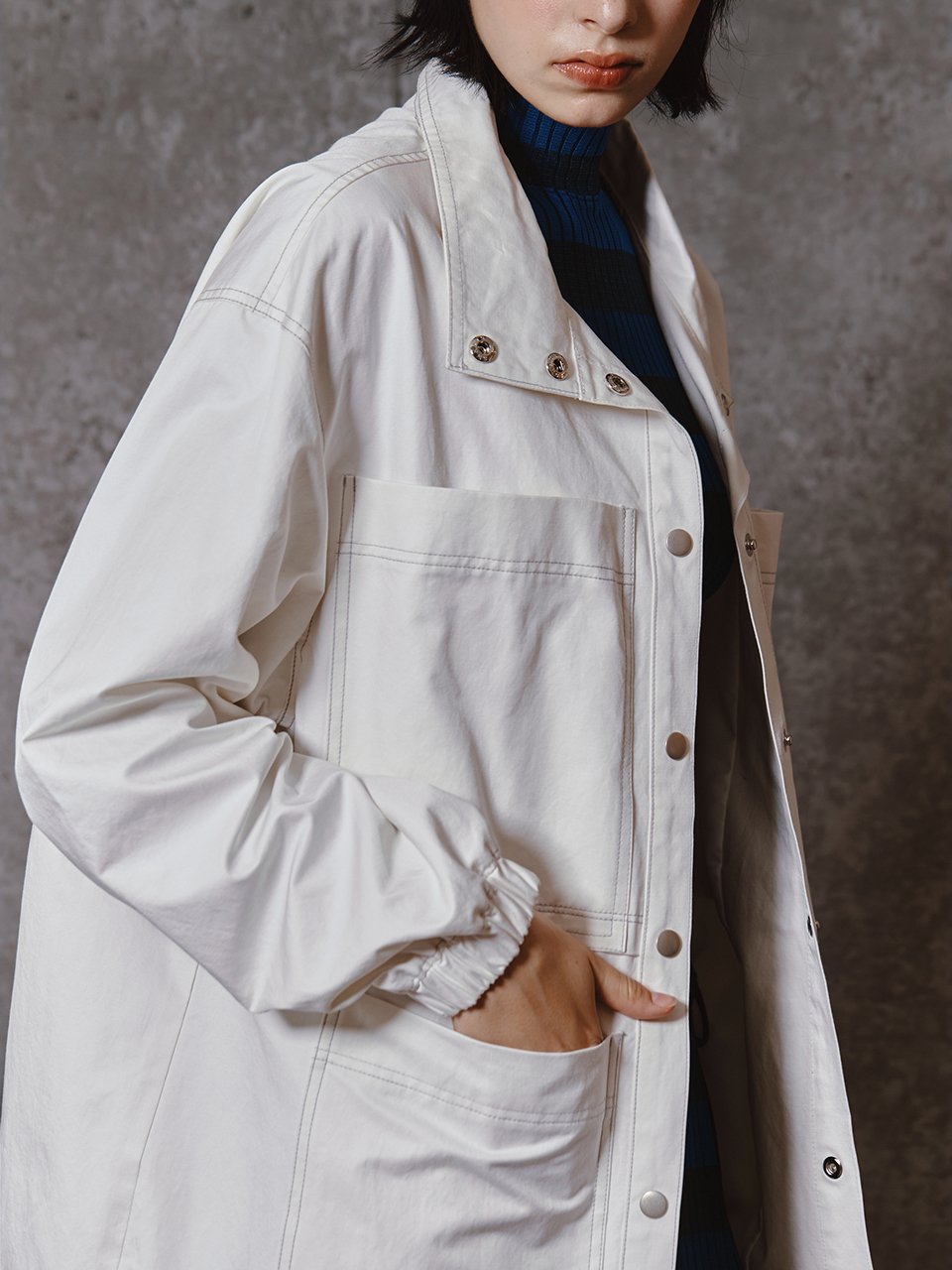 - 실버 배색 스티치가 돋보이는 빅 포켓 재킷