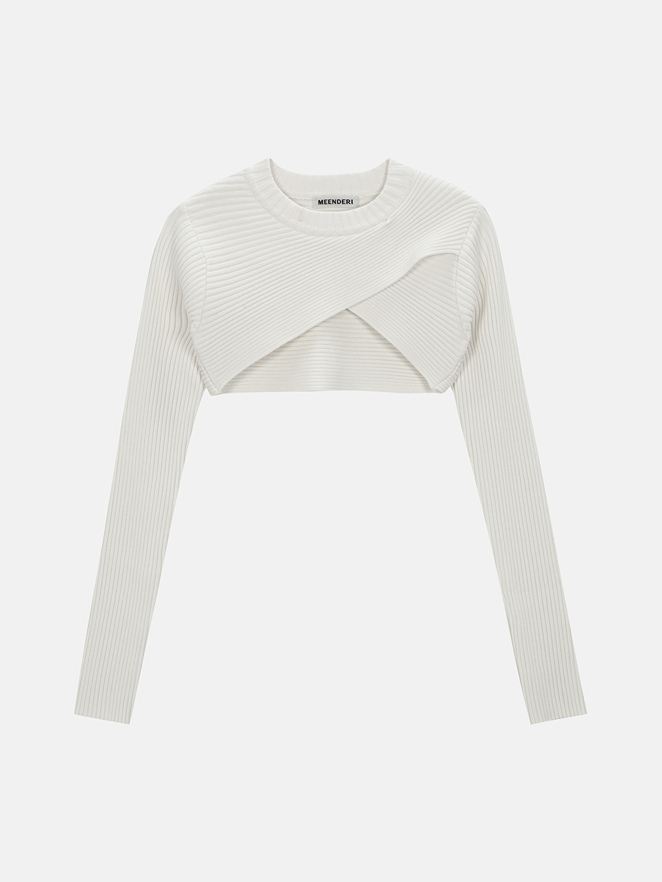 - 앞판 사선 교차 디자인이 포인트인 볼레로 니트 탑
