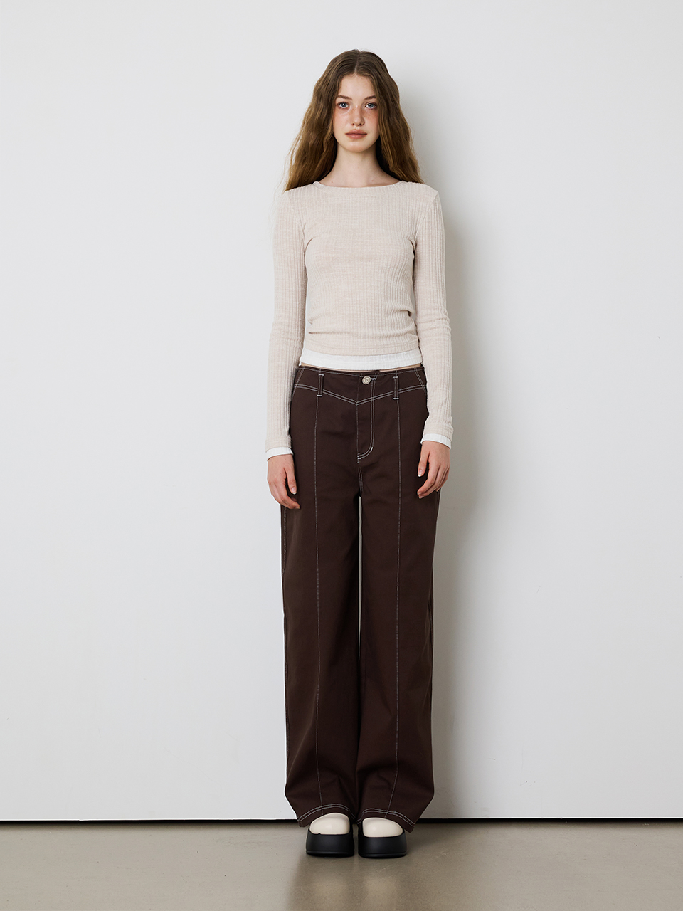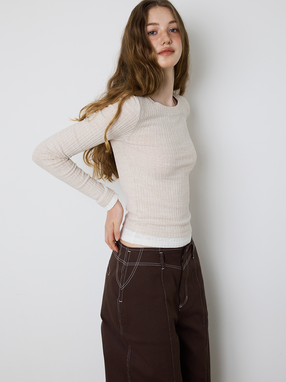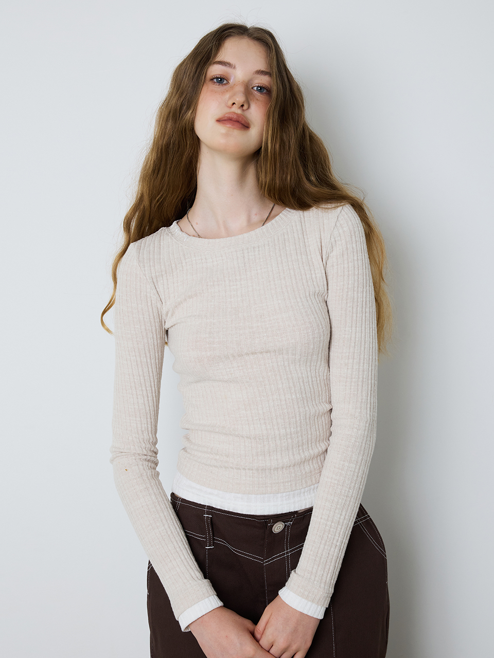 - 소매 및 밑단 부분 레이어드 디자인이 특징인 골지 티셔츠