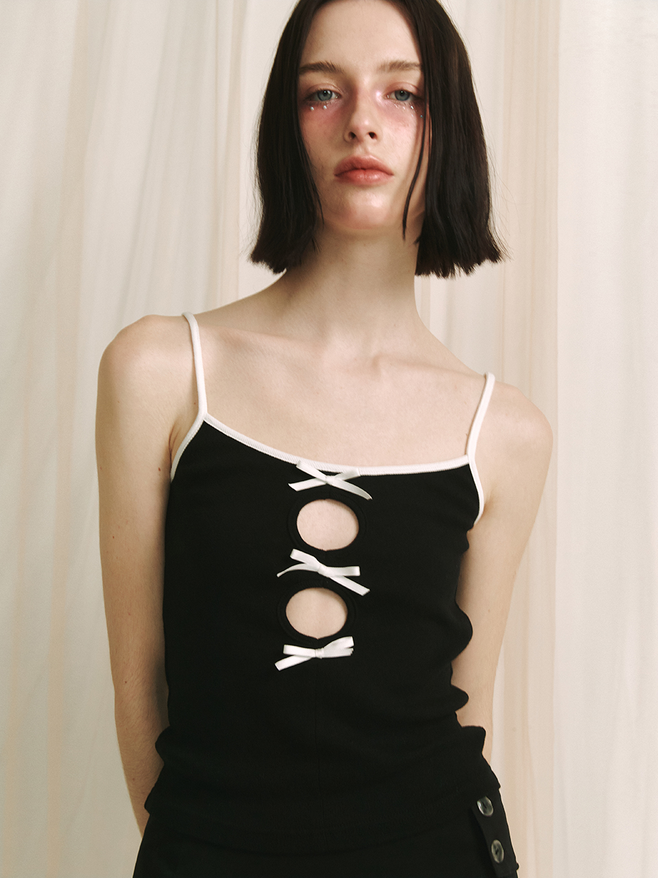 CAMI RIBBON SLEEVELSS TOP - BLACK