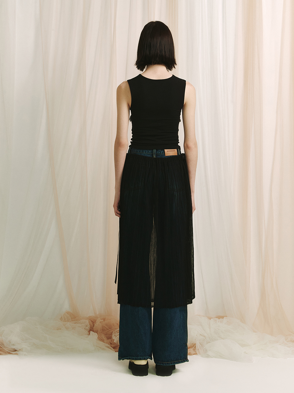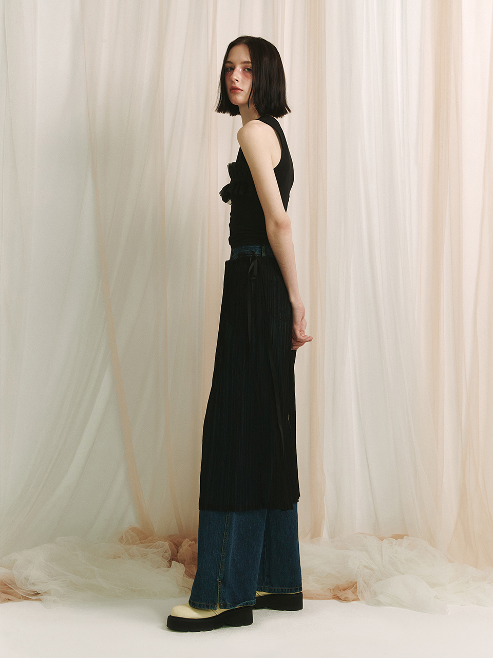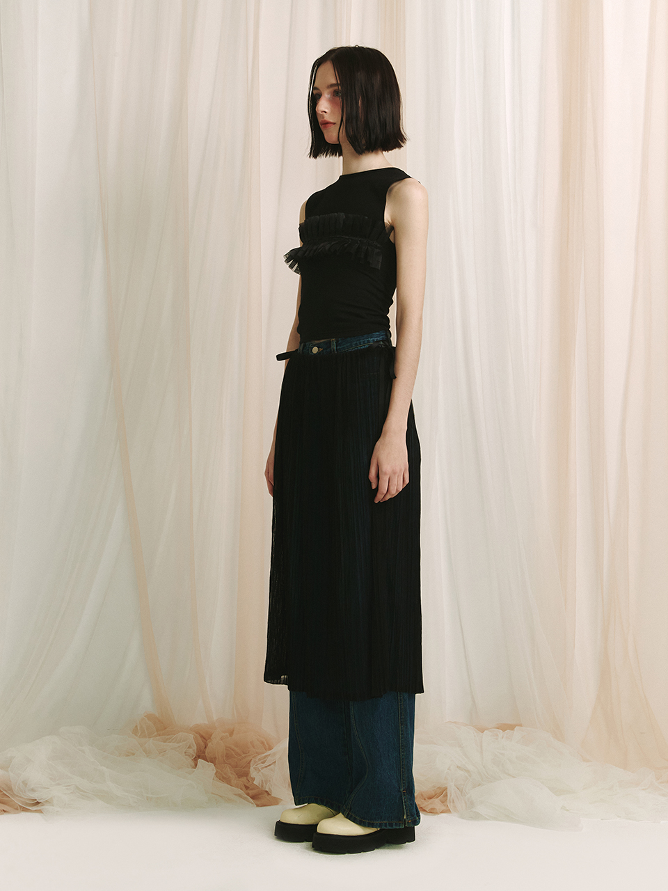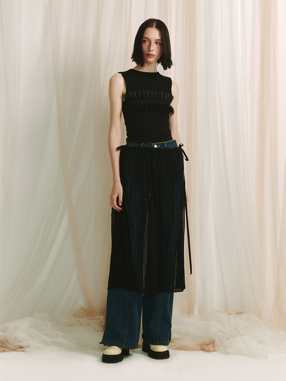 RUFFLE LACE SLEEVELESS TOP - BLACK