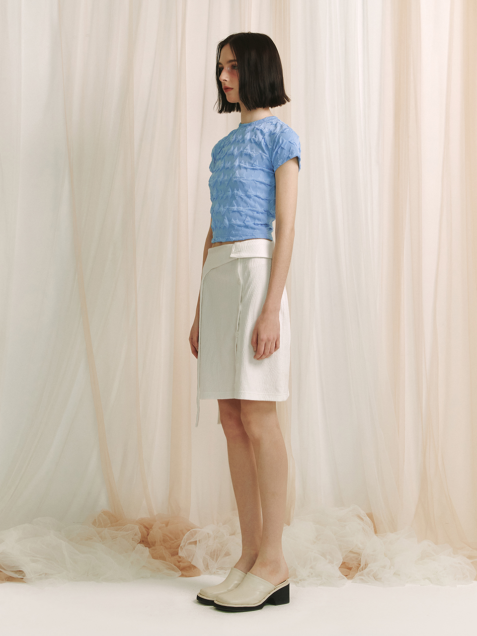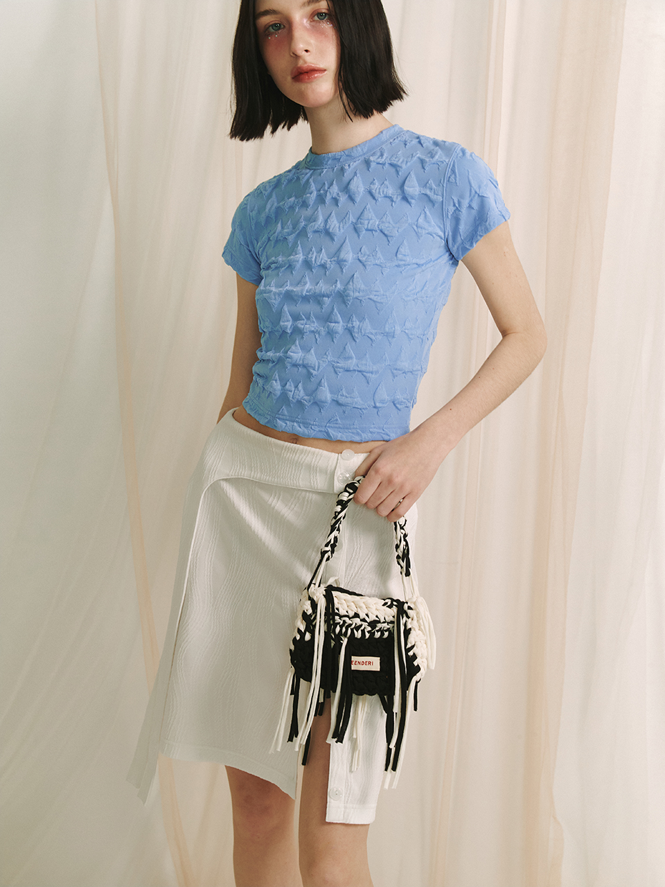 - 물결 모양의 자카드 패턴이 특징인 티셔츠