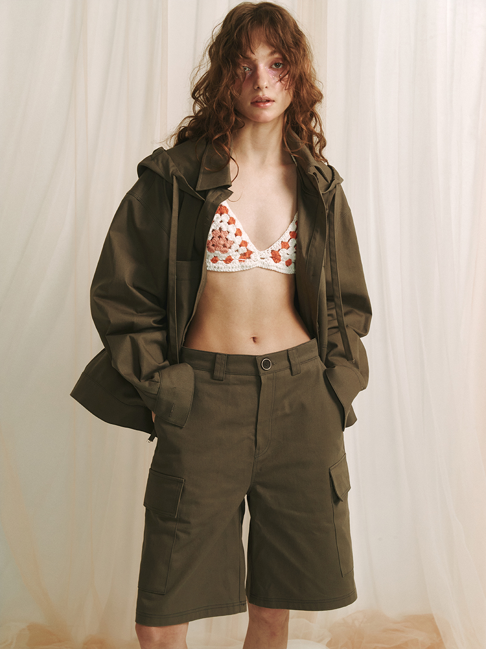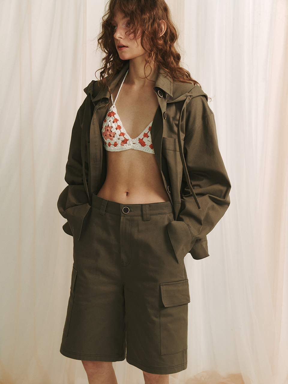 - 탄탄한 조직의 면 소재로 제작되어 각진 핏 연출 가능