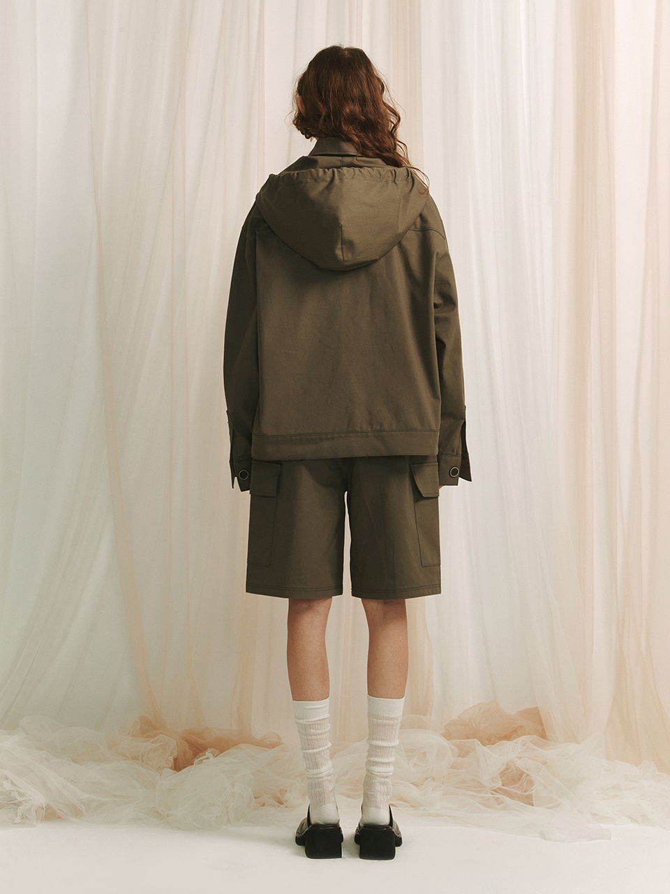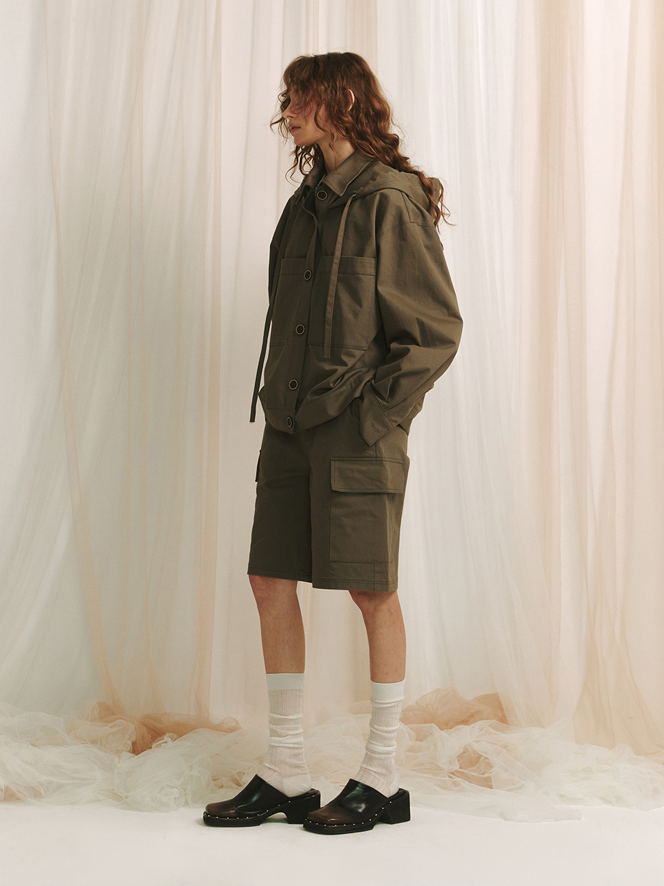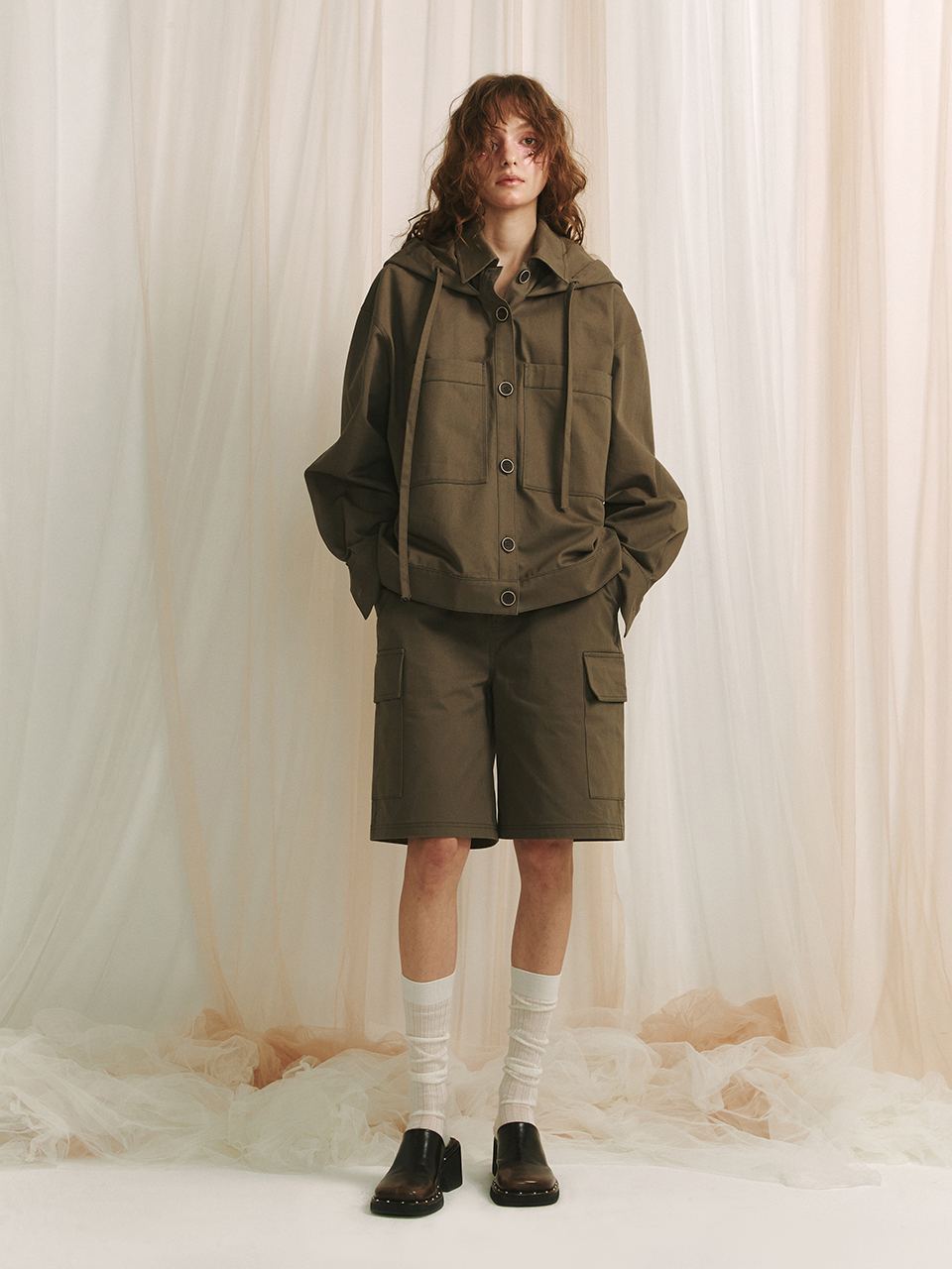 - 힙을 덮는 오버사이즈 셔츠 후드 자켓
