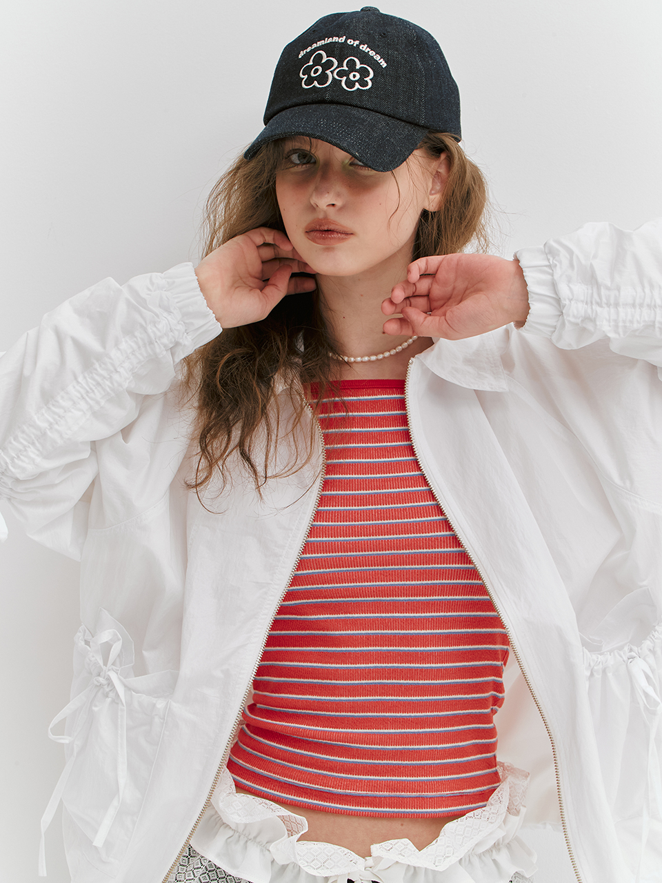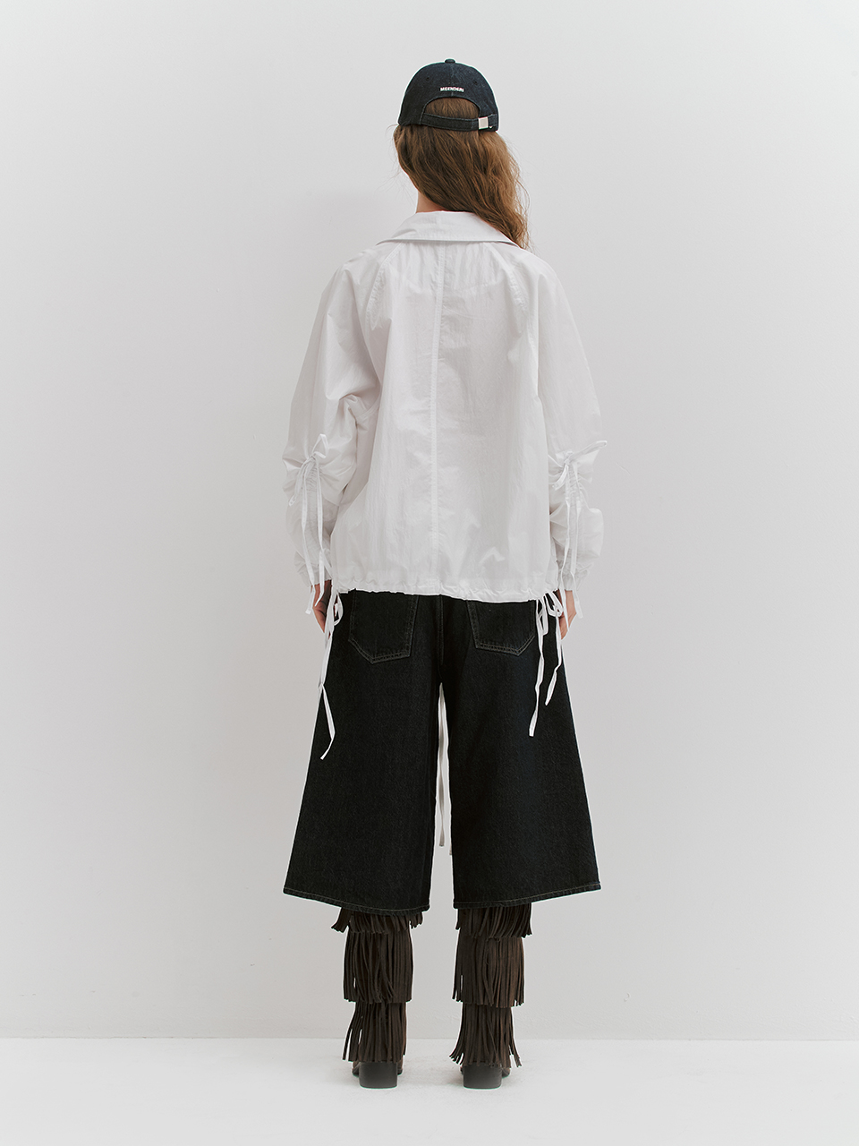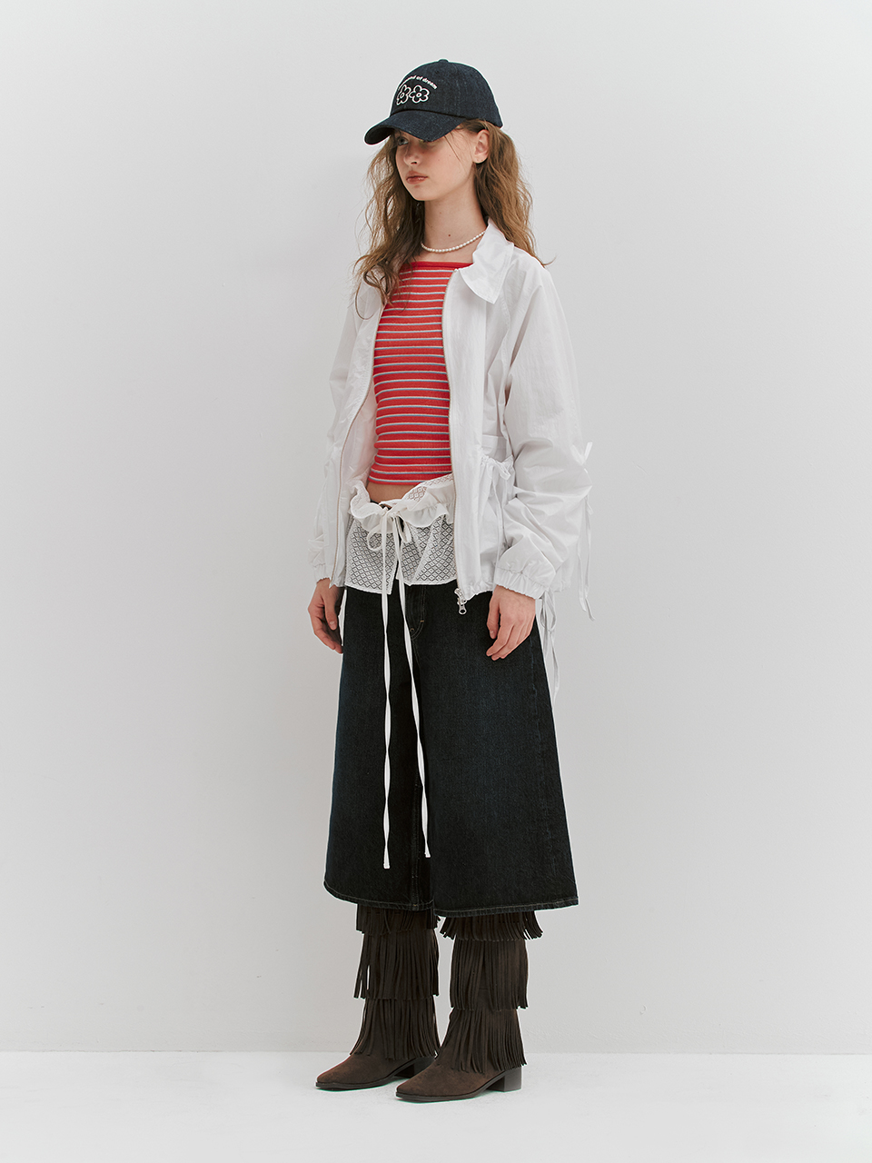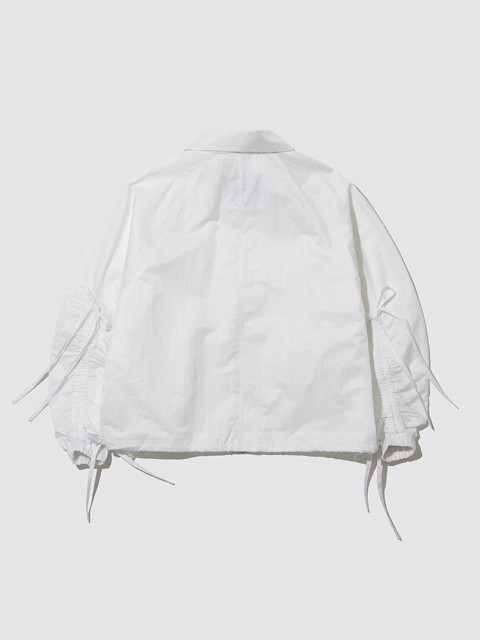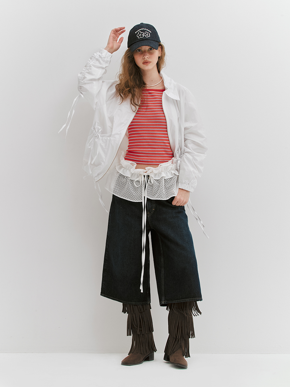 - 셔링 및 리본 디테일이 특징인 집업 재킷