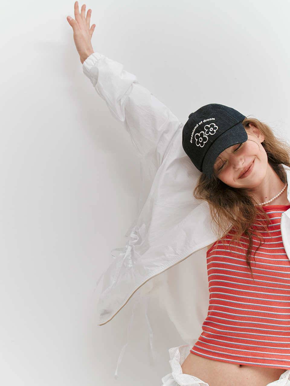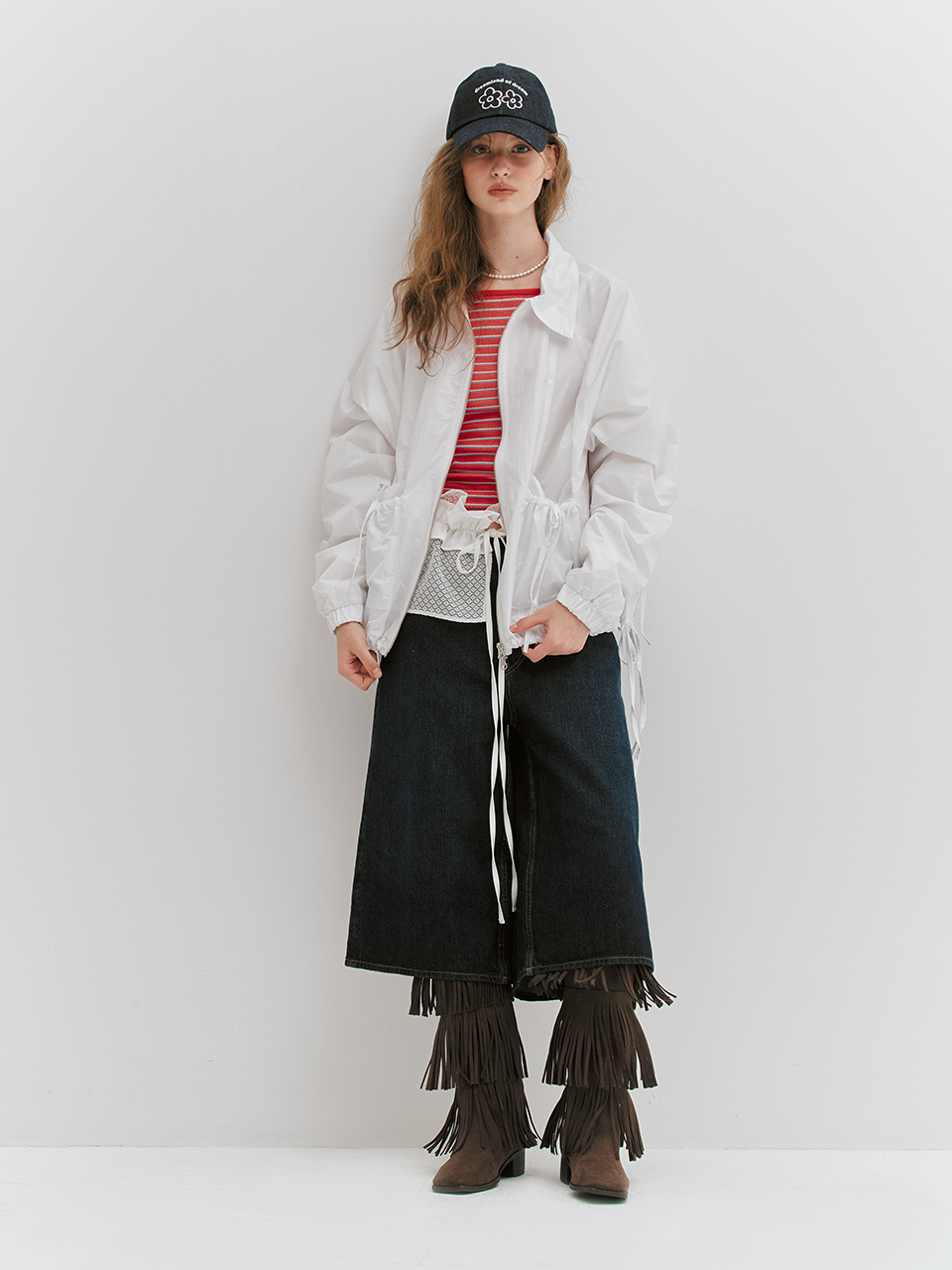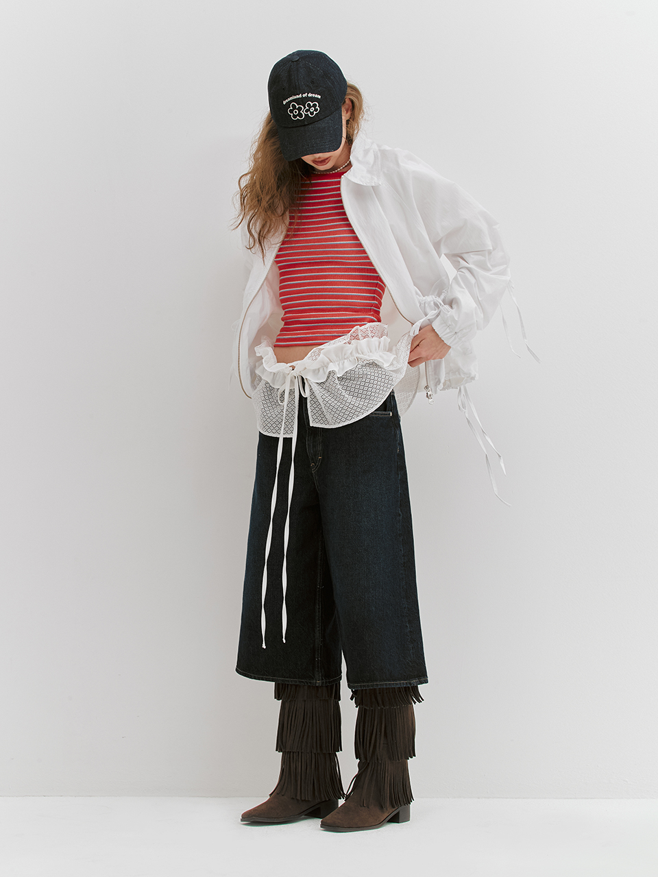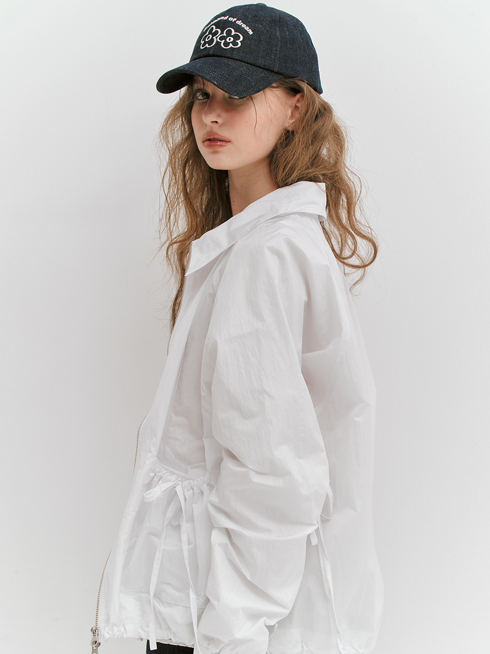 - 셔링 및 리본 디테일이 특징인 집업 재킷