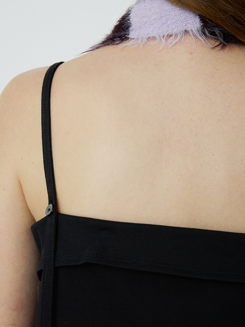 - 뒷판 스트랩 단추로 길이 조정이 가능한 미디 드레스