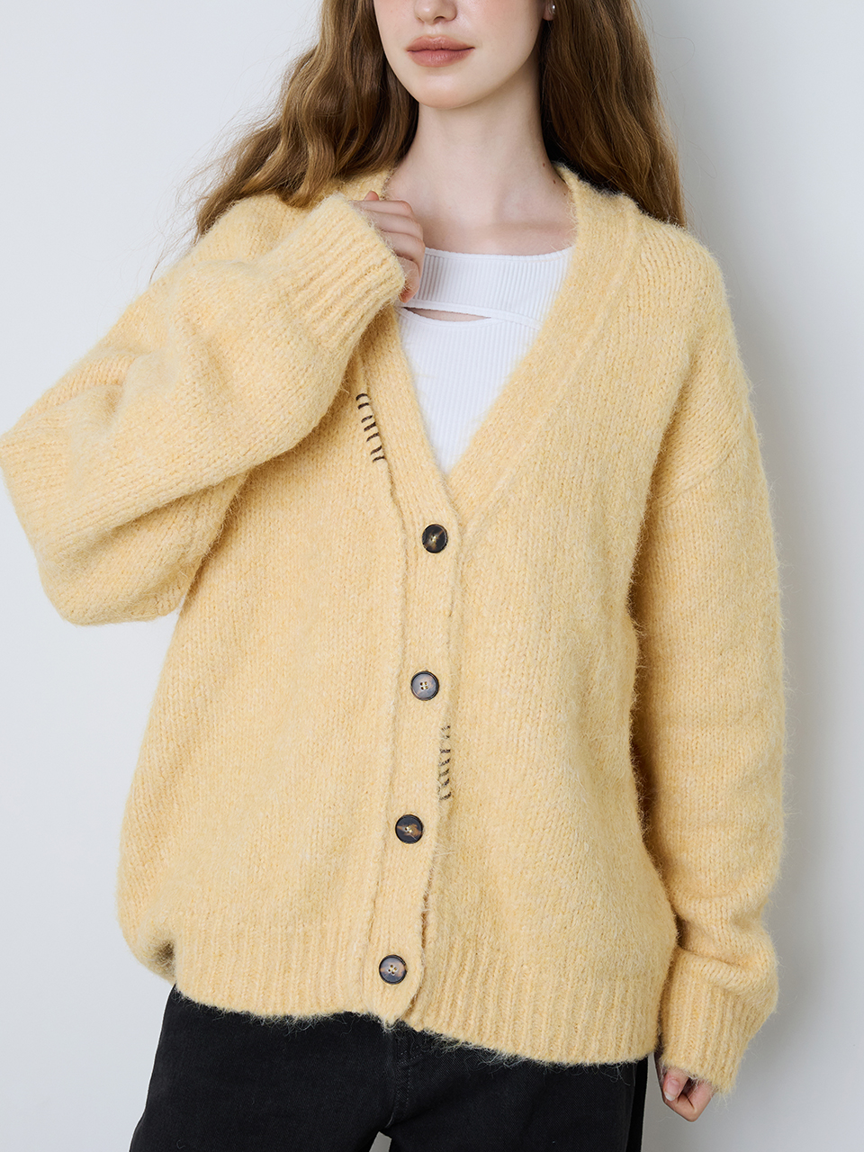 - 소프트한 텍스쳐의 원사로 제작된 니트 가디건