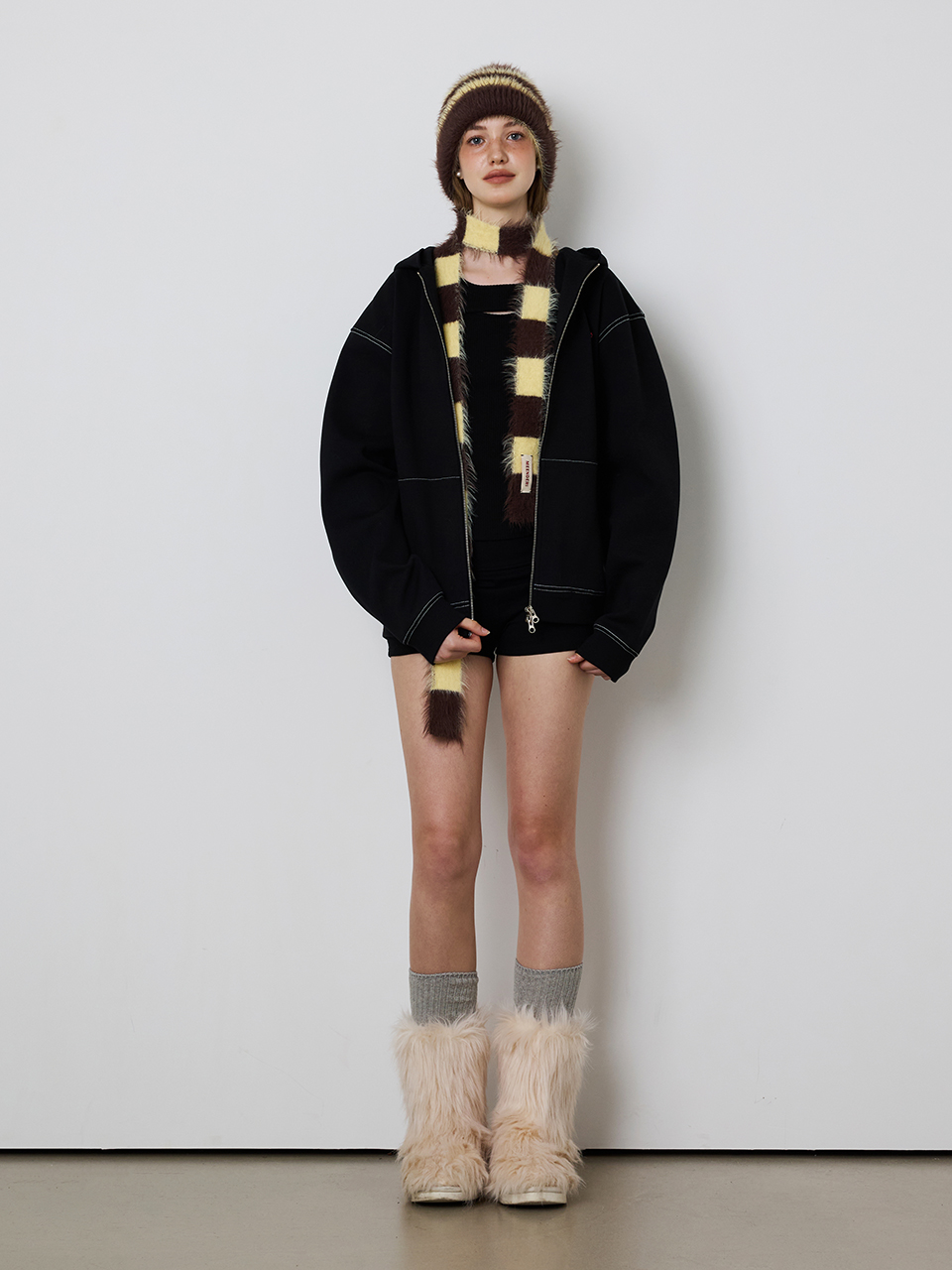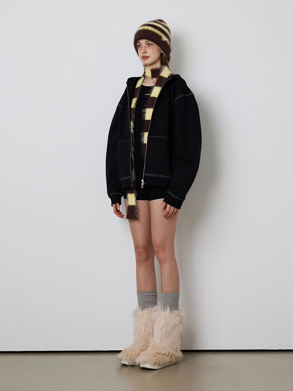 - 소프트한 텍스쳐의 퍼 원사로 제작된 니트 머플러