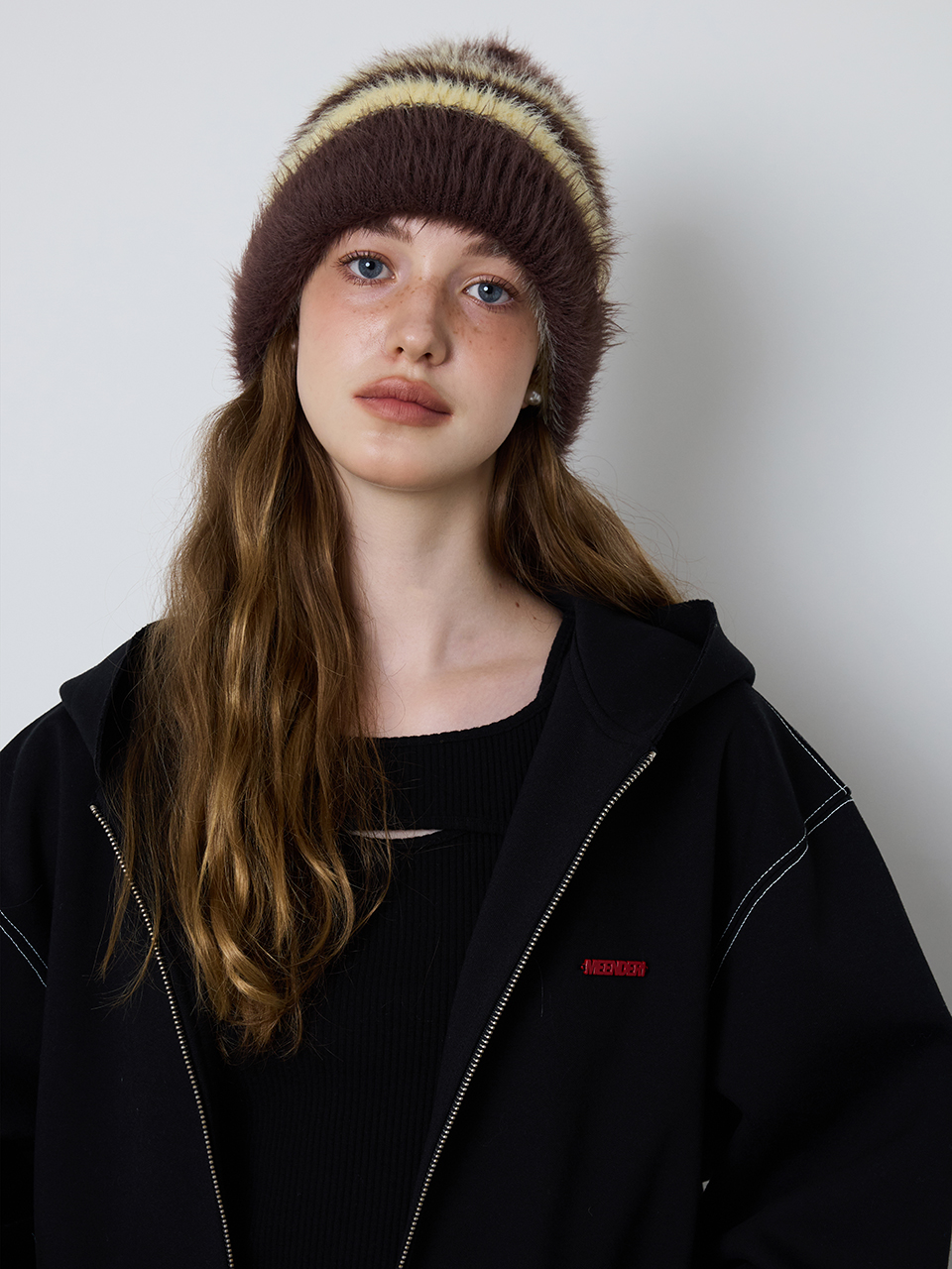 - 소프트한 텍스쳐의 퍼 원사로 제작된 니트 비니