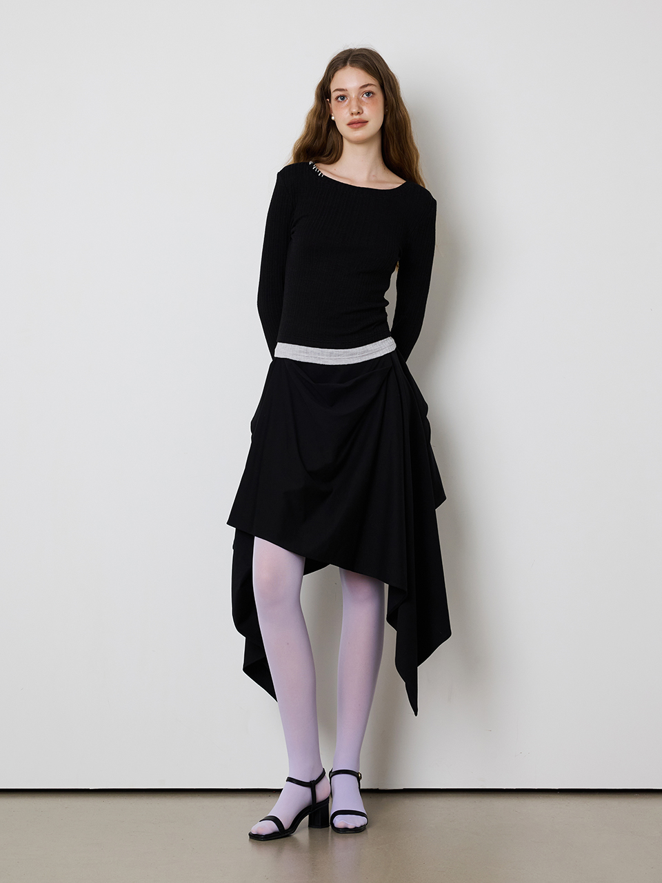 - 소매 및 밑단 부분 레이어드 디자인이 특징인 골지 티셔츠