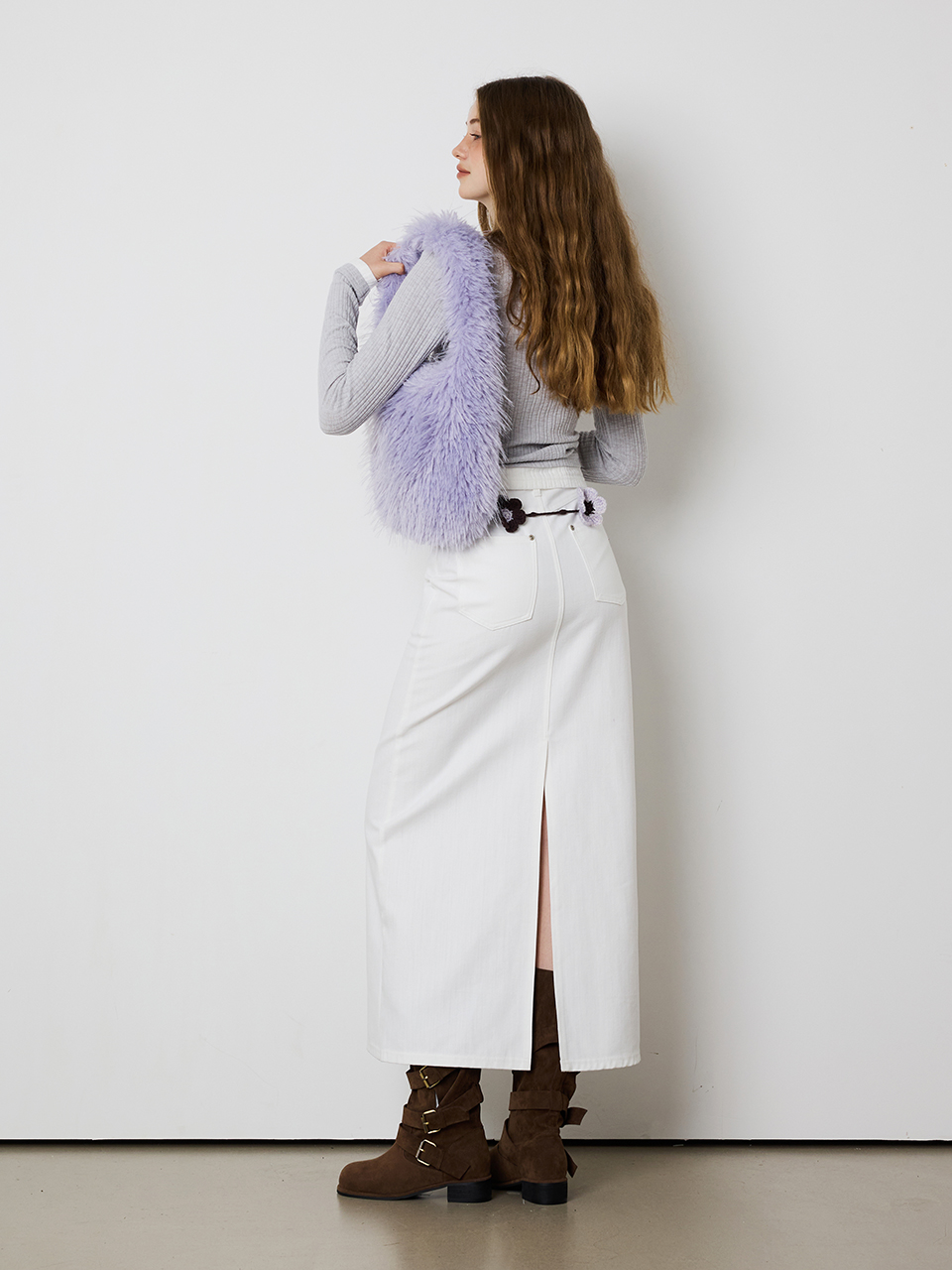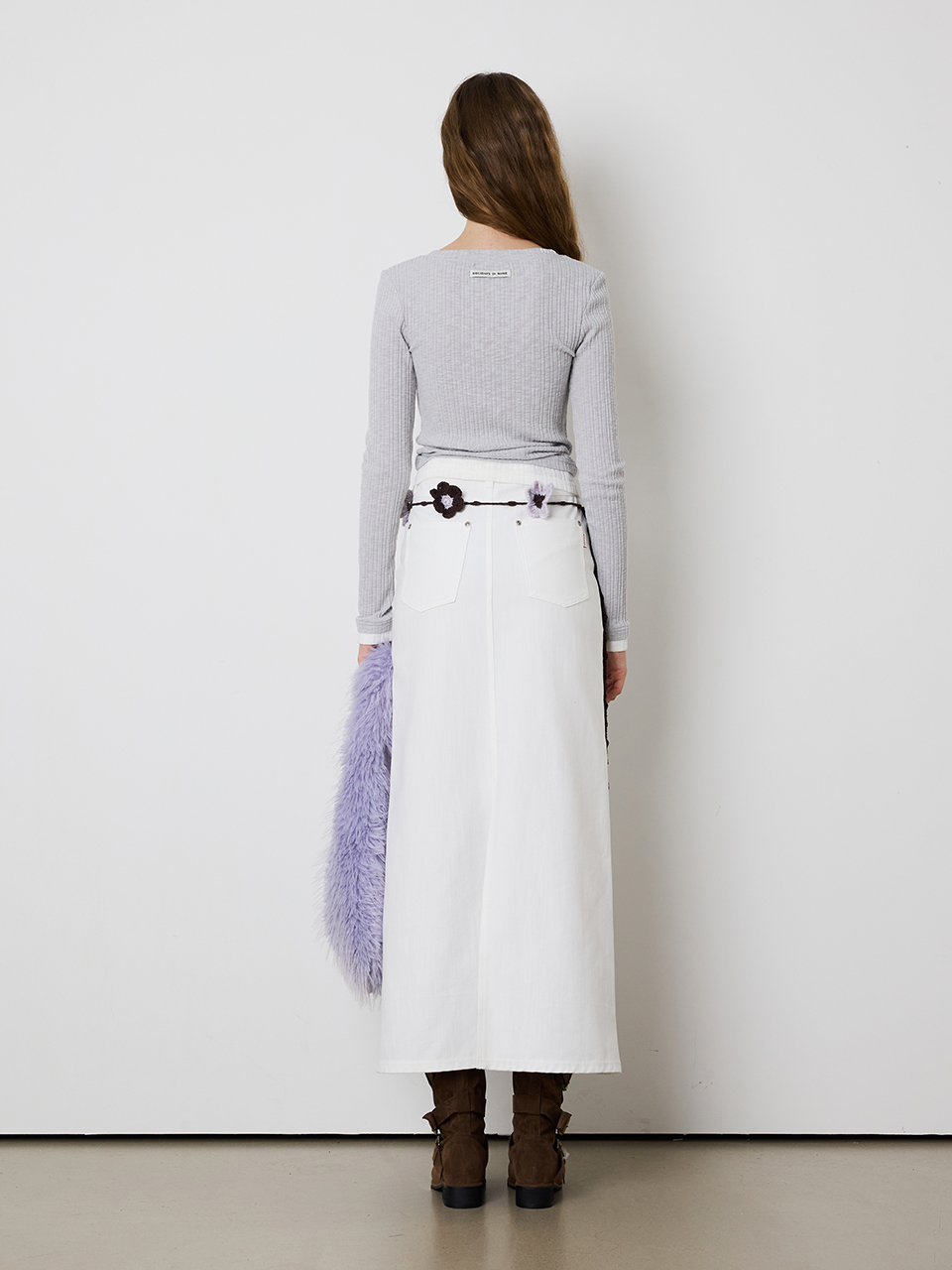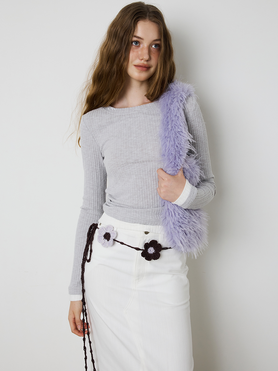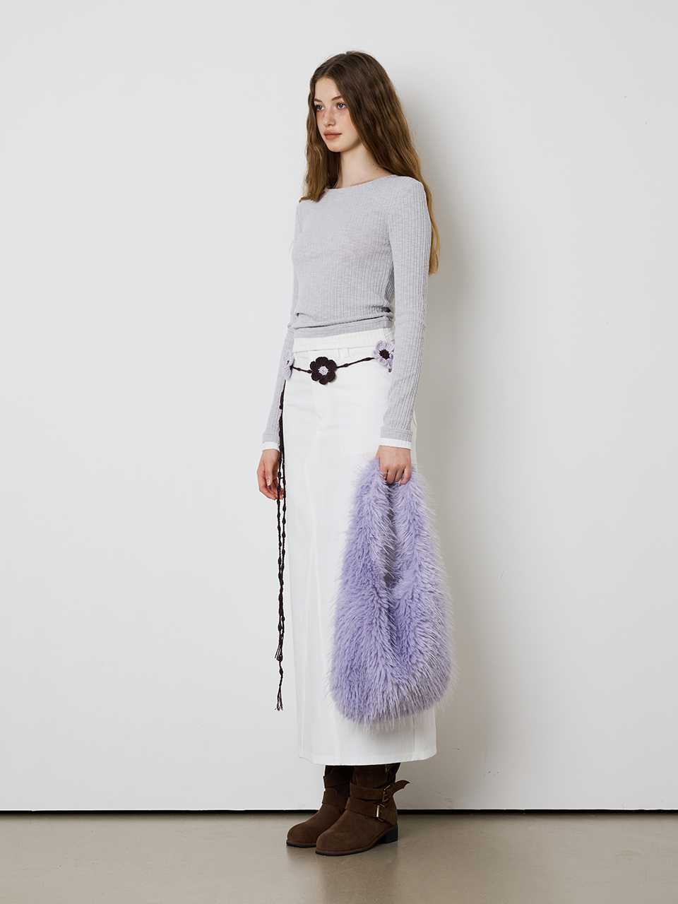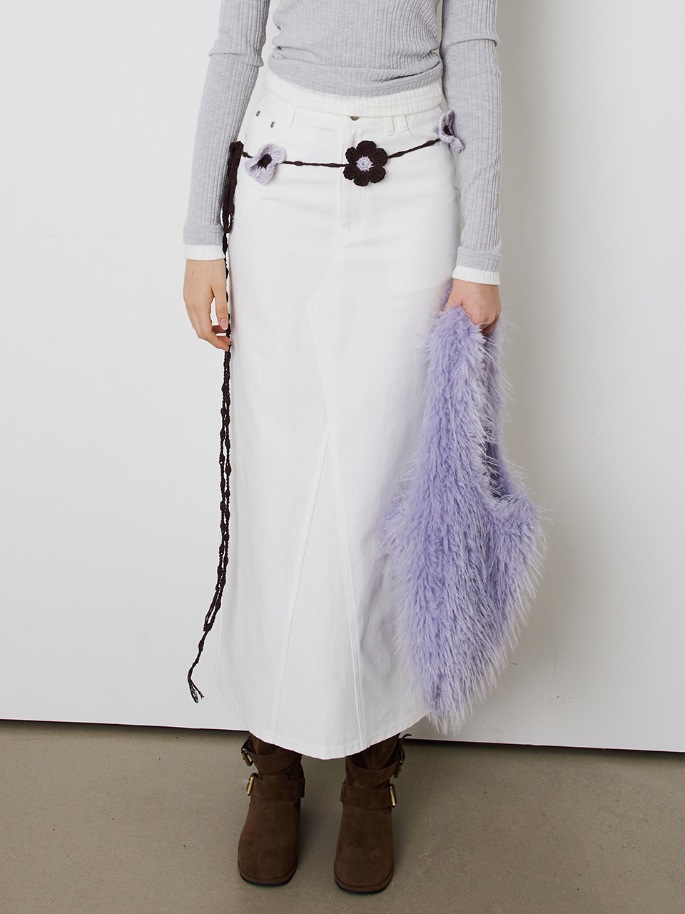 - 24FW 시즌 포인트 컬러의 니팅 플라워가 돋보이는 핸드메이드 벨트