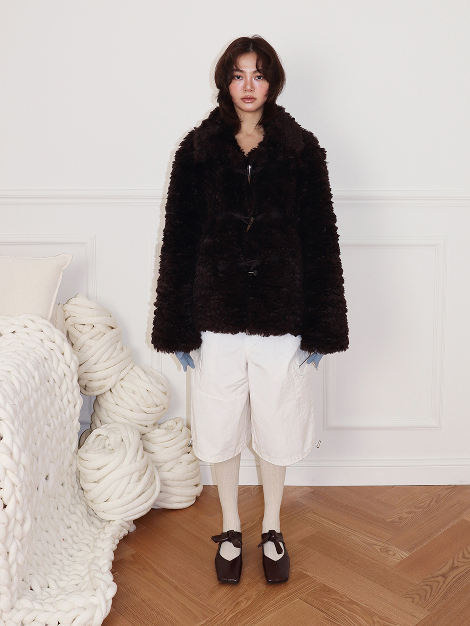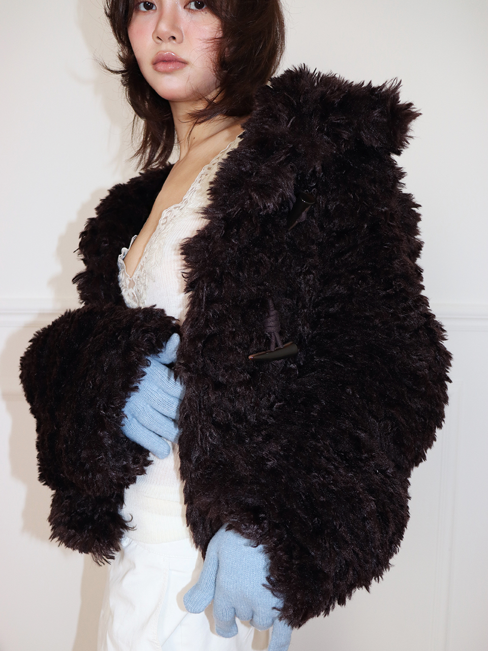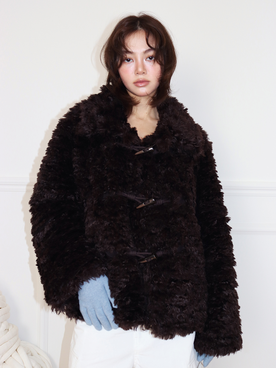 (PRE-ORDER 11/14 예약발송) COZY TOGGLE FUR JACKET - CHOCOLATE
