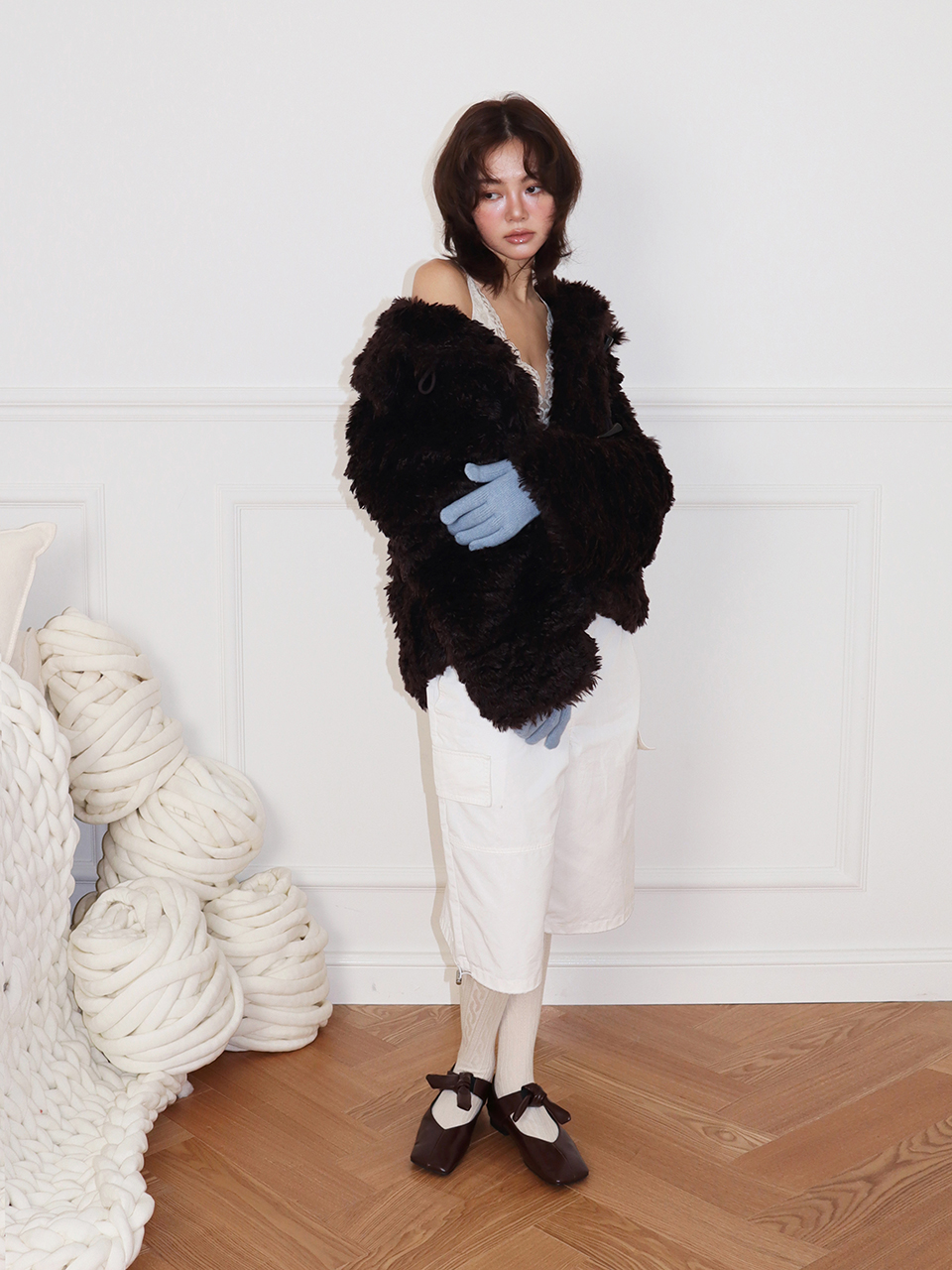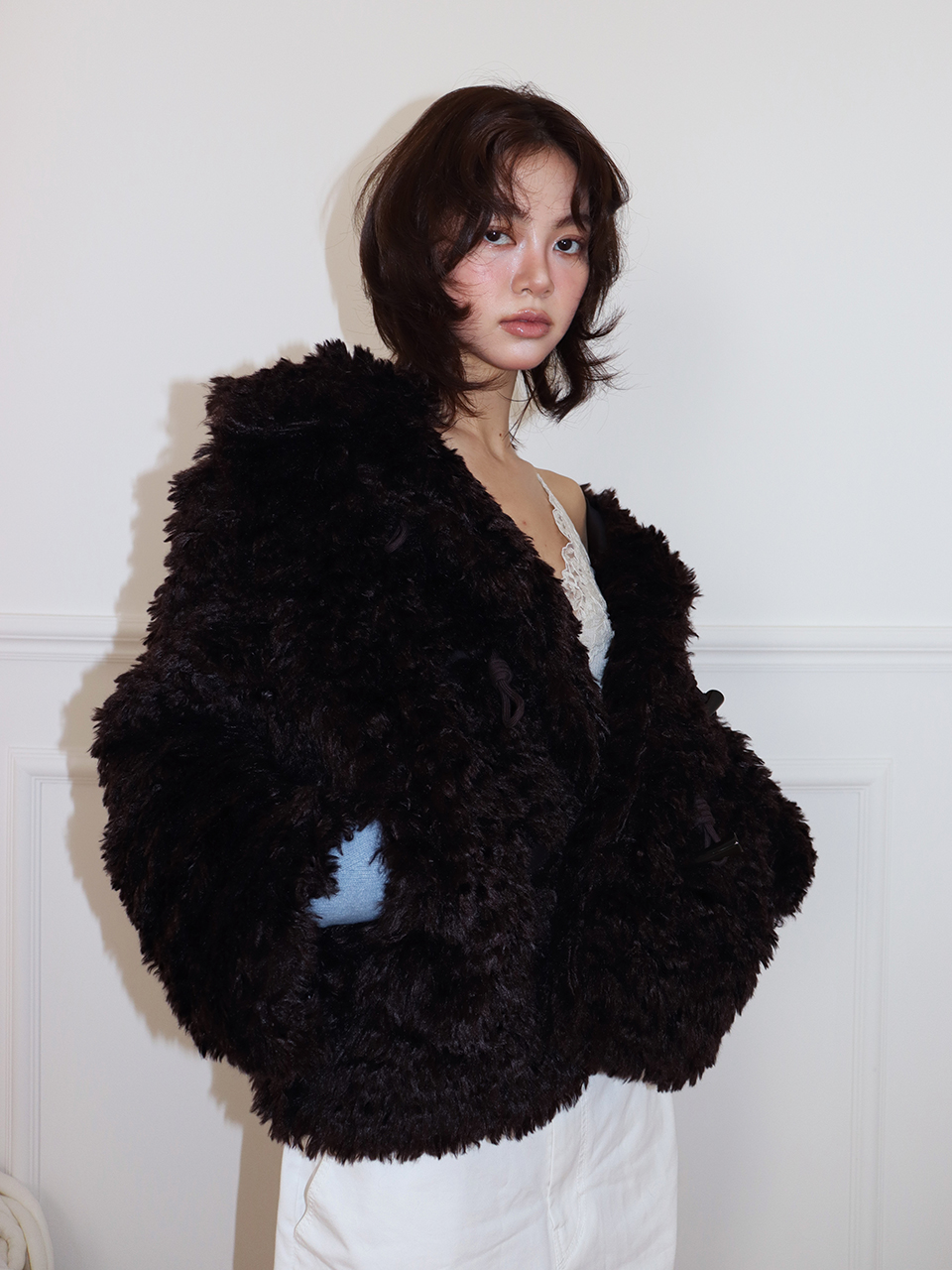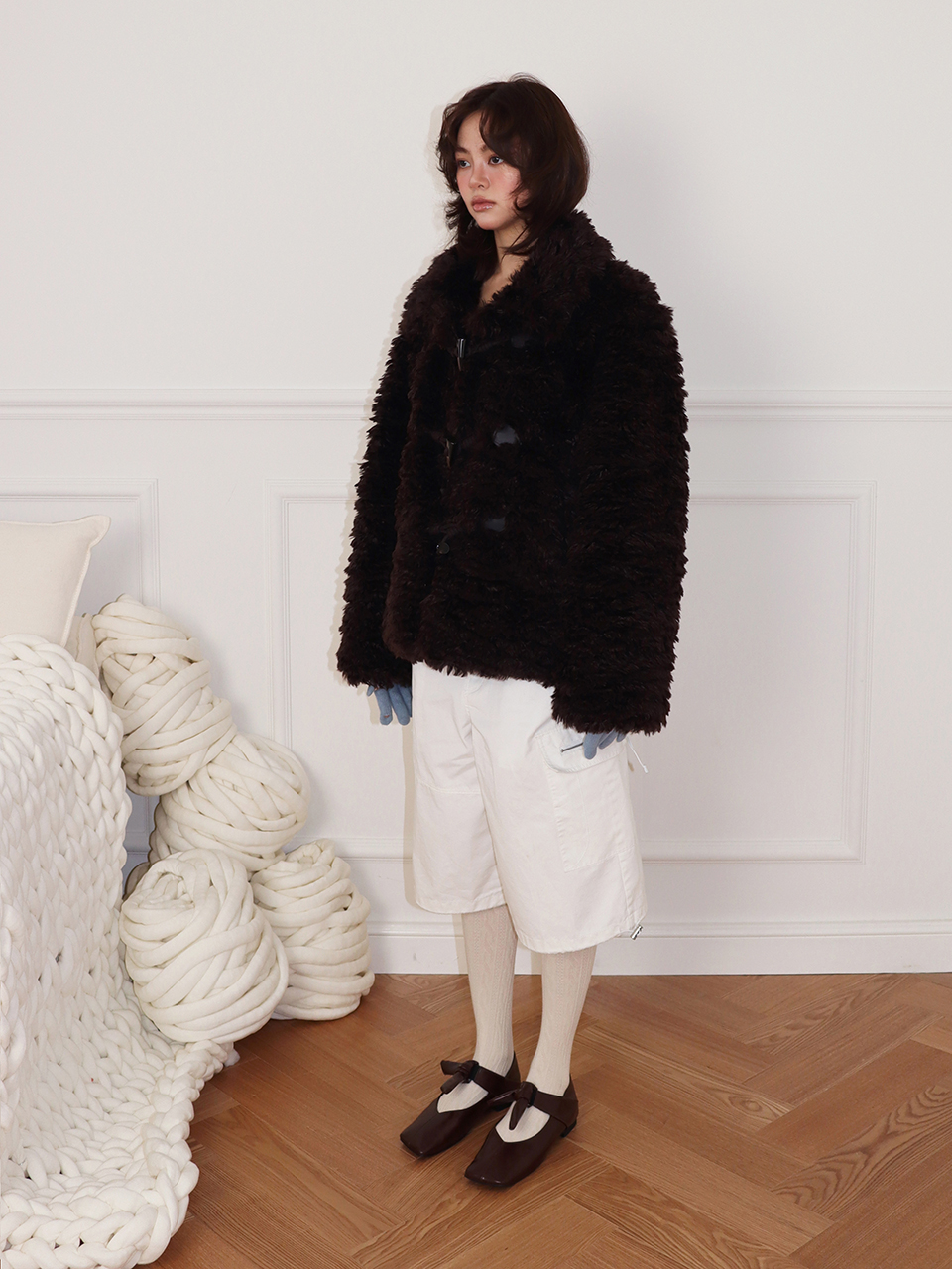 (PRE-ORDER 11/14 예약발송) COZY TOGGLE FUR JACKET - CHOCOLATE
