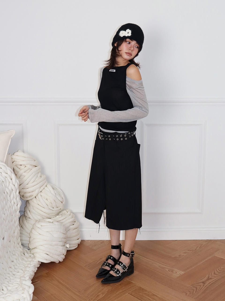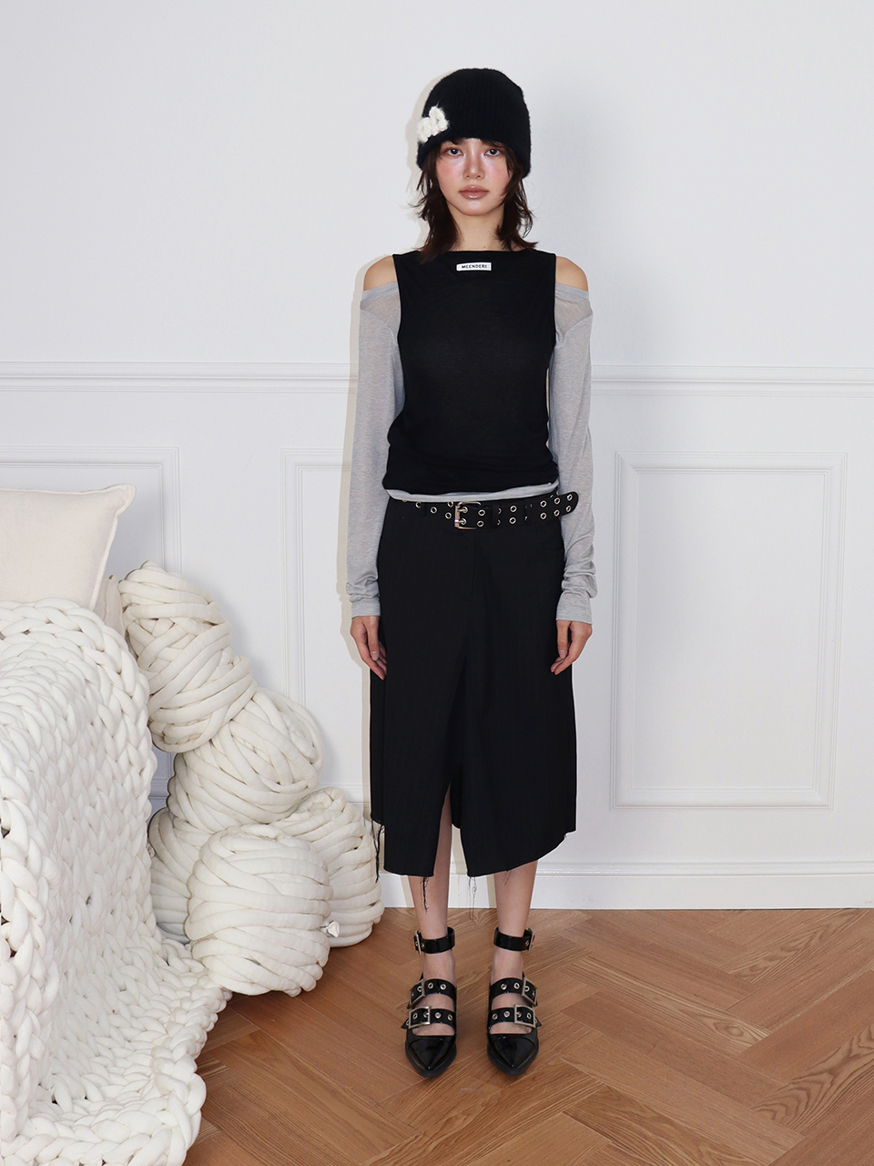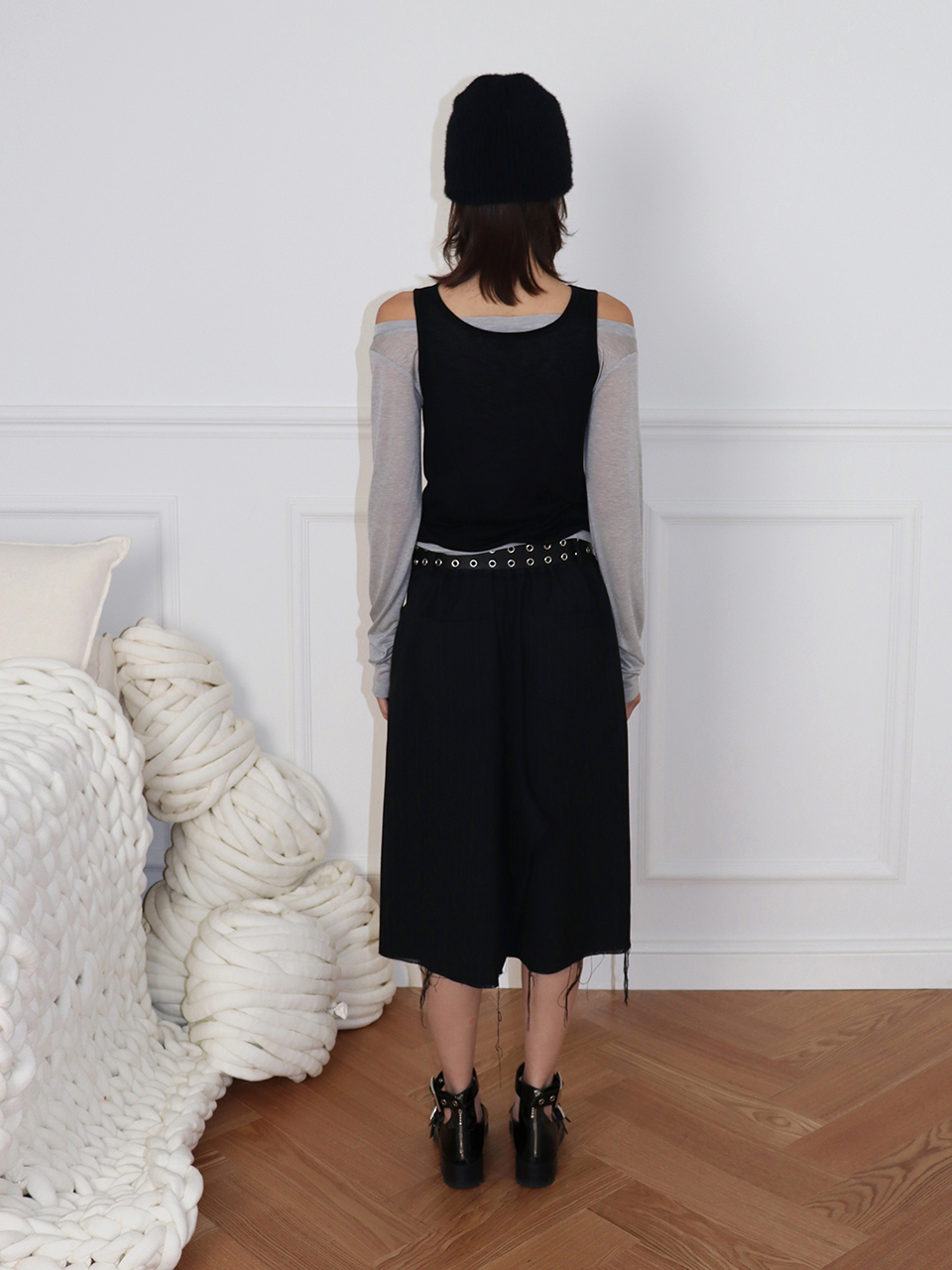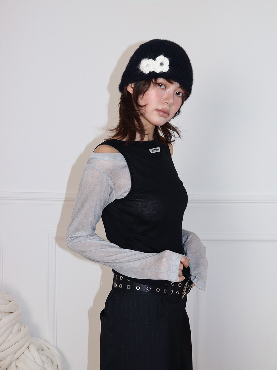 (5차 리오더) 2WAY SHEER LAYERED TOP - BLACK