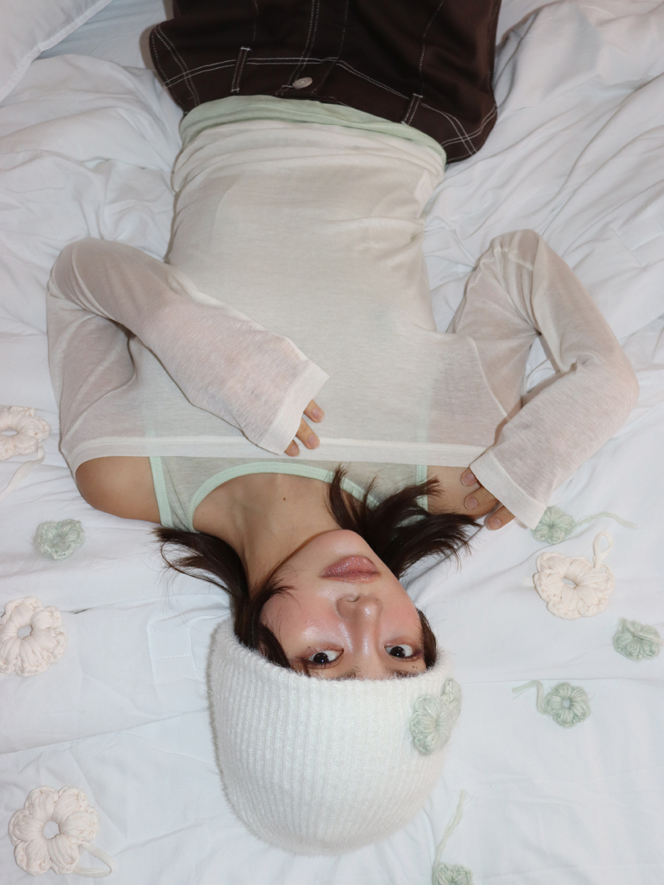 *Long sleeve : 총장(옆목) 52 / 가슴 36 / 어깨 39 / 밑단 34 / 암홀 16.5 / 소매길이 64.5 / 소매단 9