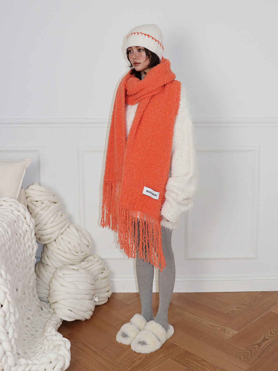 ALPACA KNIT LONG MUFFLER - ORANGE