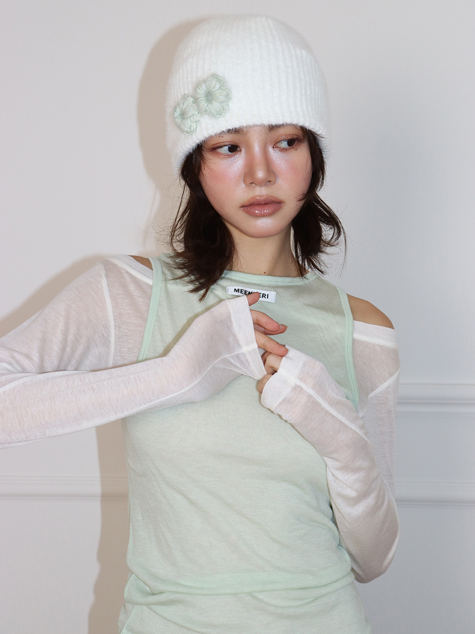 (2차 리오더) FLOWER FLAKE BEANIE - WHITE