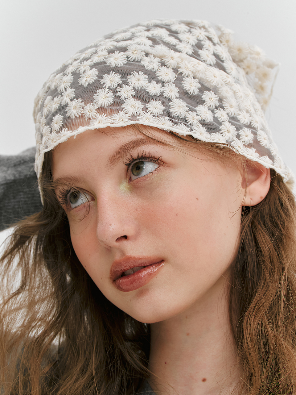 - 은은한 비침이 있는 플라워 레이스 원단으로 제작된 스카프