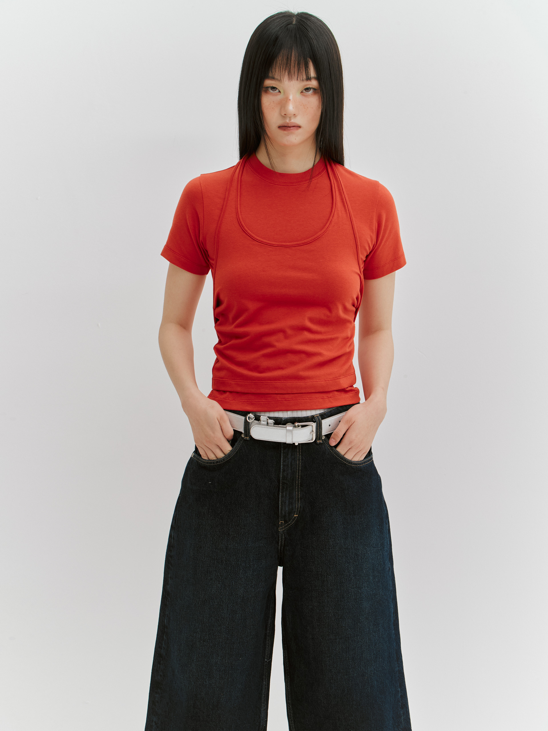 - 매듭법에 따라 다양한 룩 연출이 가능한 레이어드 탑